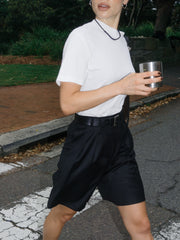 The Otis Short brings a European edge to androgynous tailoring. Featuring a high-rise waist, a longer-line, wide-legged silhouette, and sharp pleats, it combines effortless style with precise detail. Double belt loops complete the look, while the 100% wool construction ensures versatility and longevity through every season.