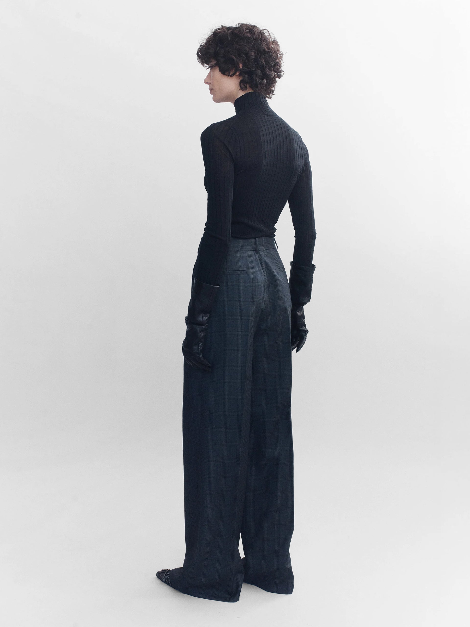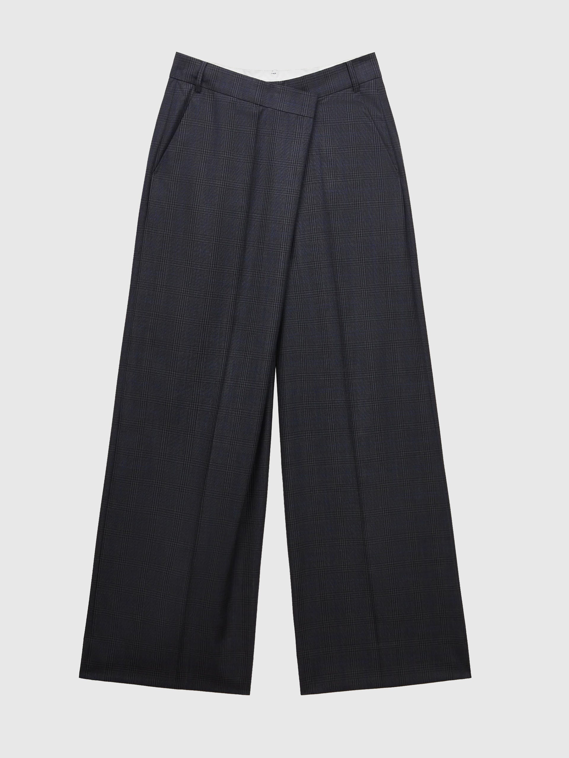 The Adrian Wool Check Asymmetric Pants are distinguished by an asymmetric waist and wide leg for a modern twist on classic tailoring.