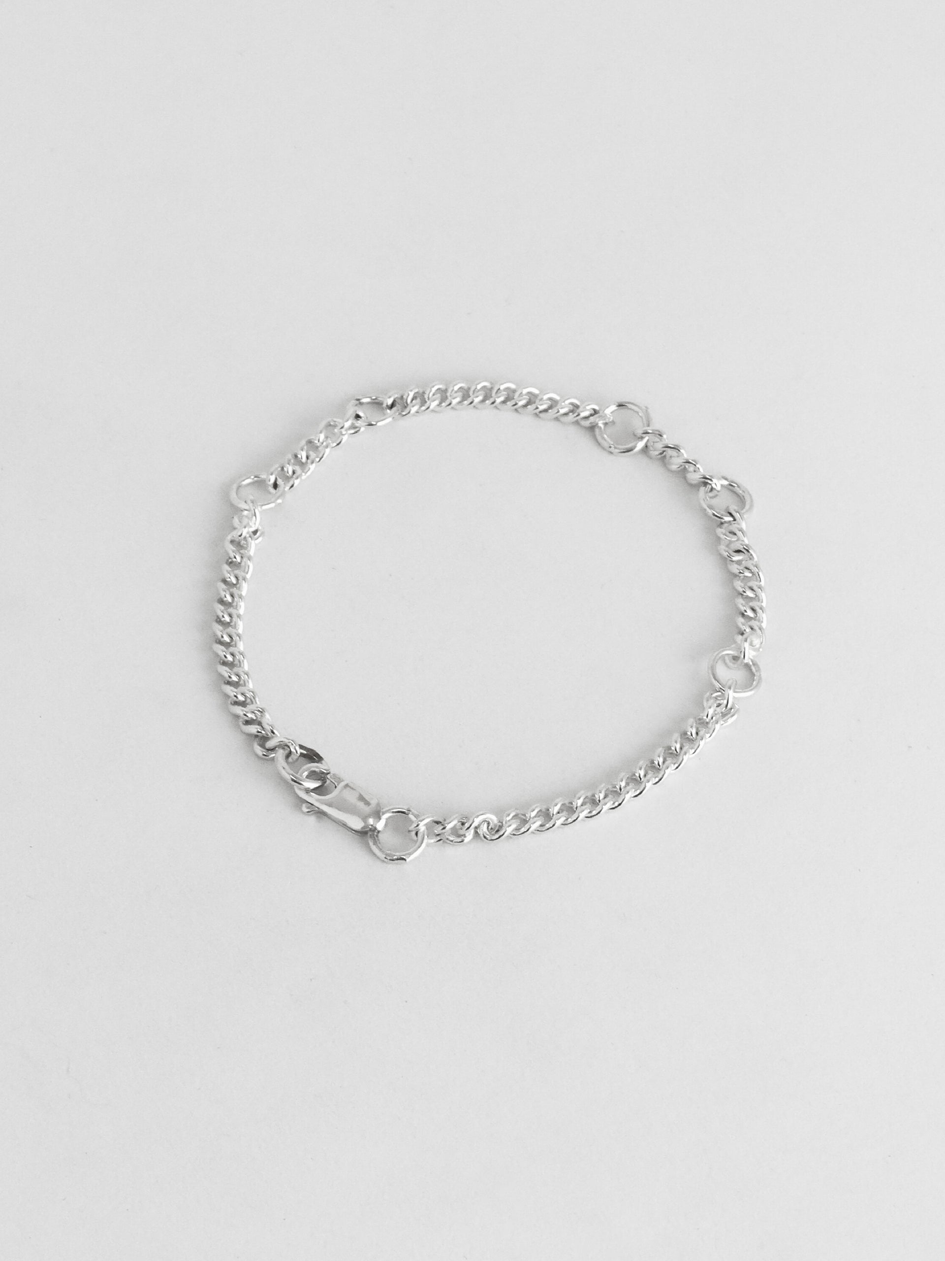 Japenese for speckle, 'Supekkuru' is designed in The Lairs neighbouring design studio. Handmade from .925 sterling silver, handcrafted silver rings are punctuated at irregular intervals contrasting a fine, classic curb chain.