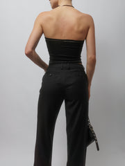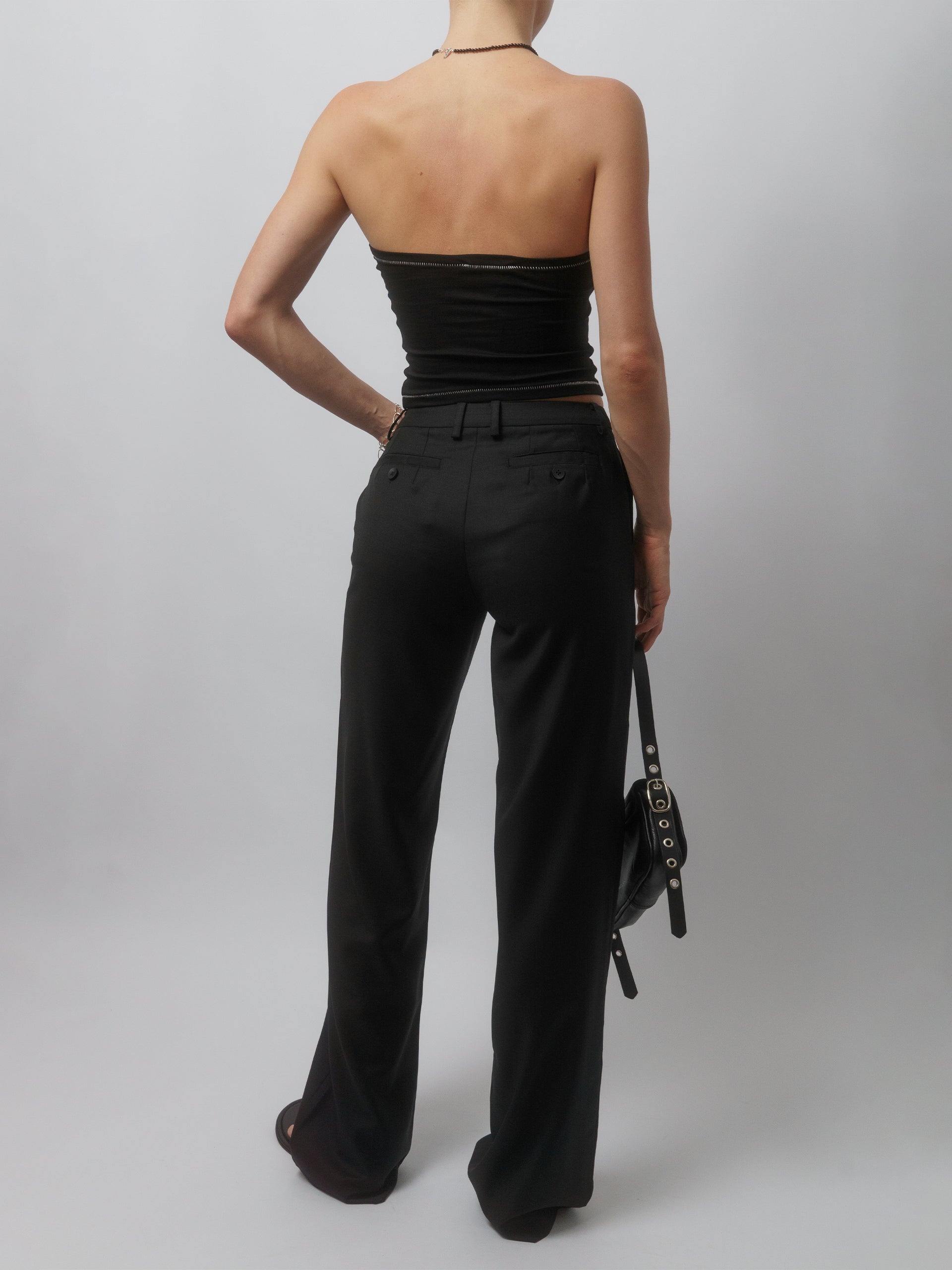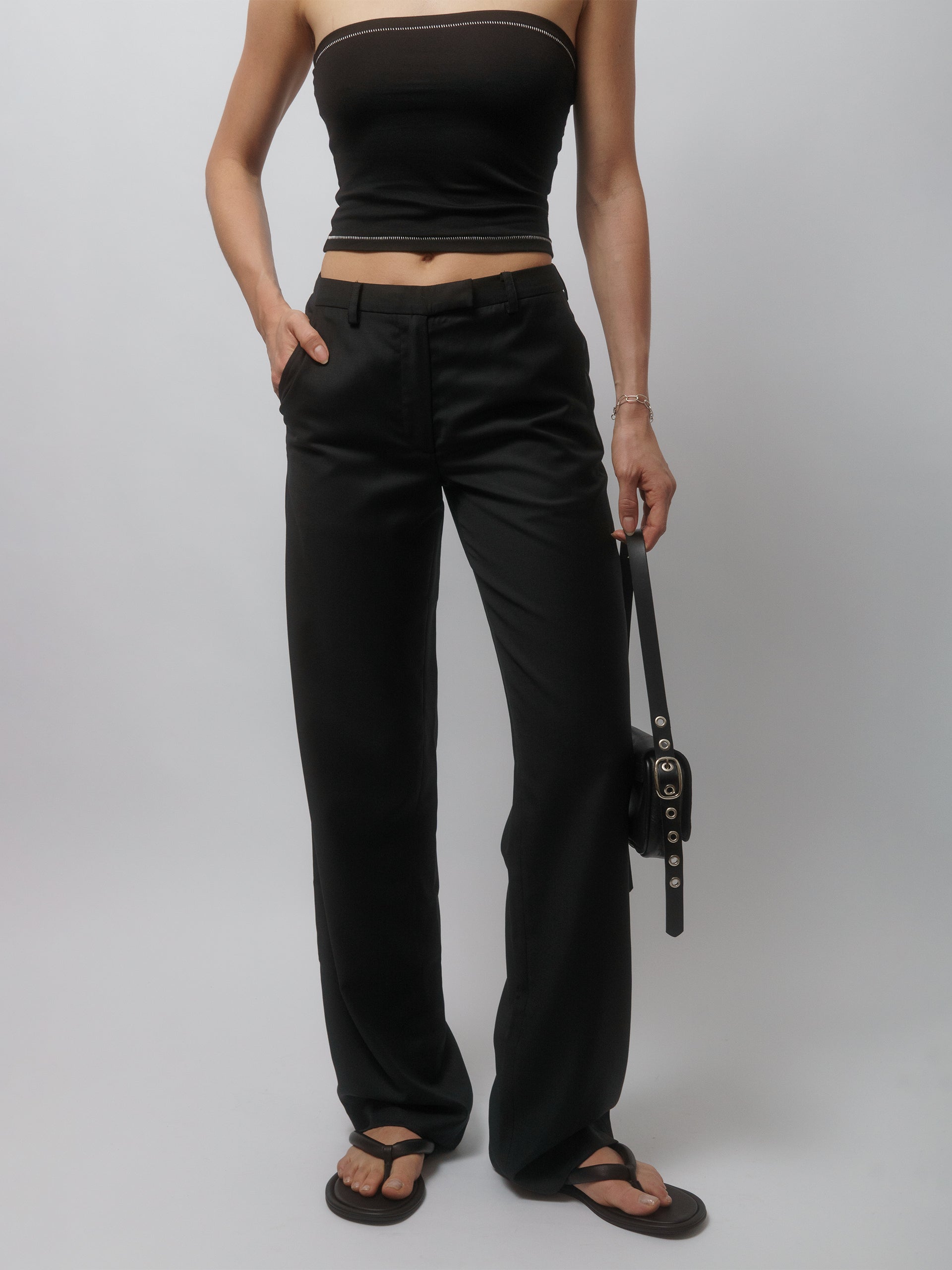 The Matilda Slim Trousers offer a refined yet relaxed fit. Crafted from 100% wool, these pants feature a mid-rise waist and a straight cut for a sleek, 90s-inspired silhouette. Flat seam detailing adds a tailored edge, while the belt loops offer endless styling possibilities.