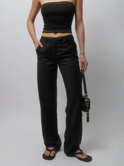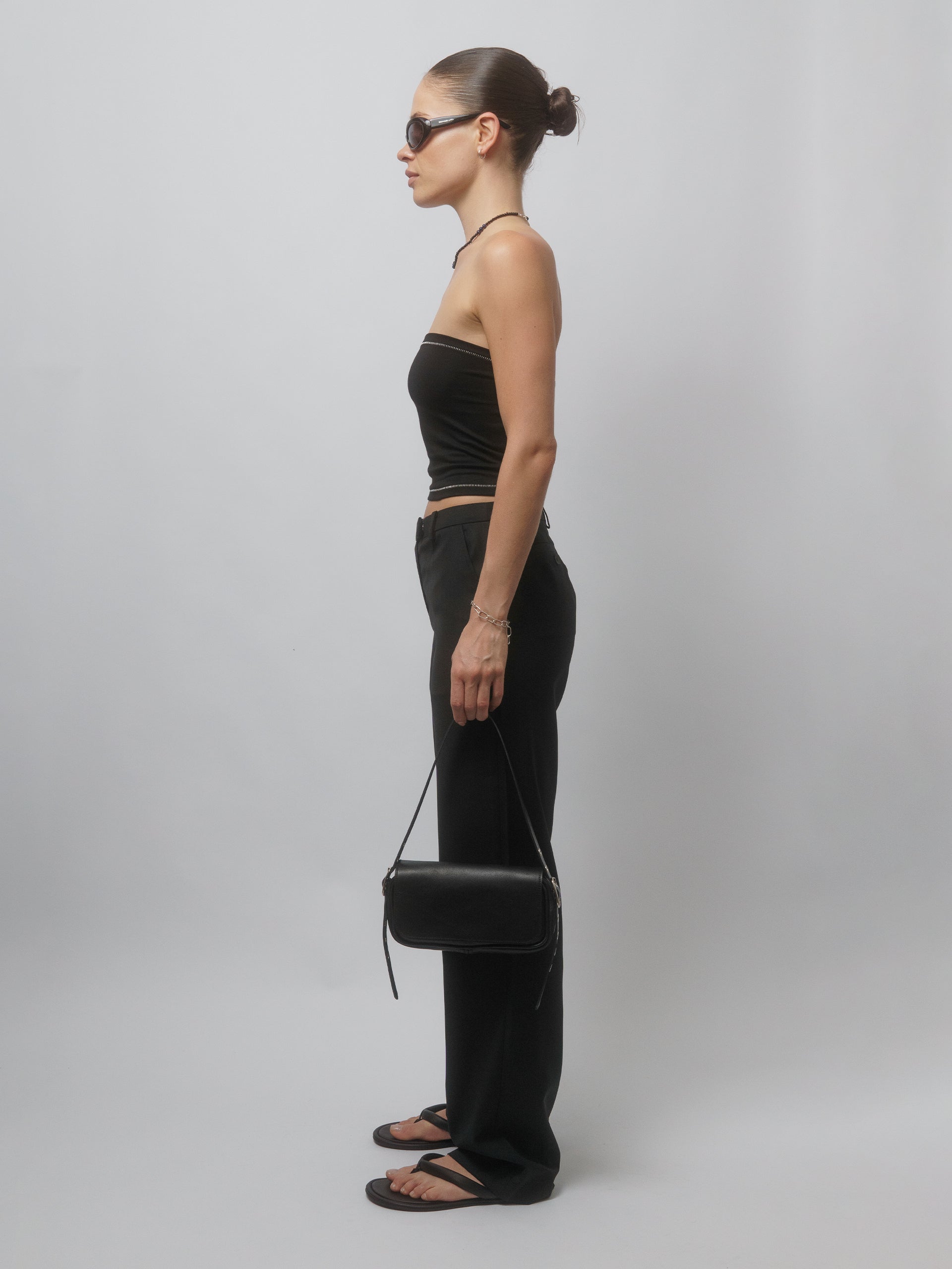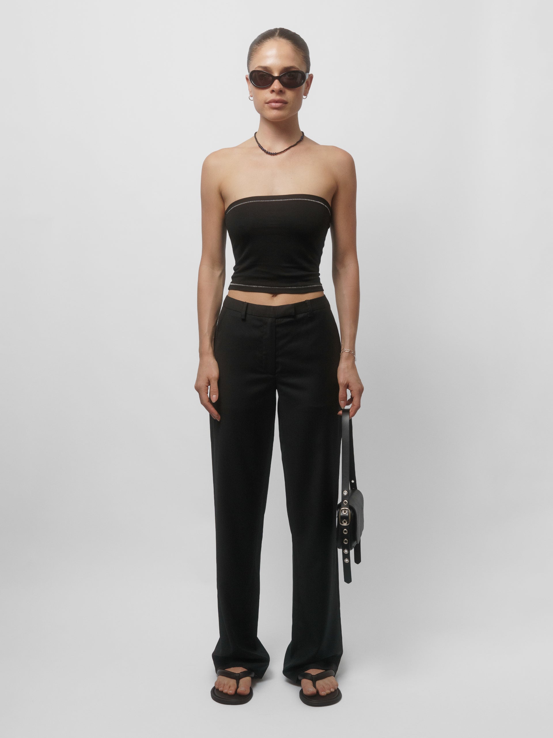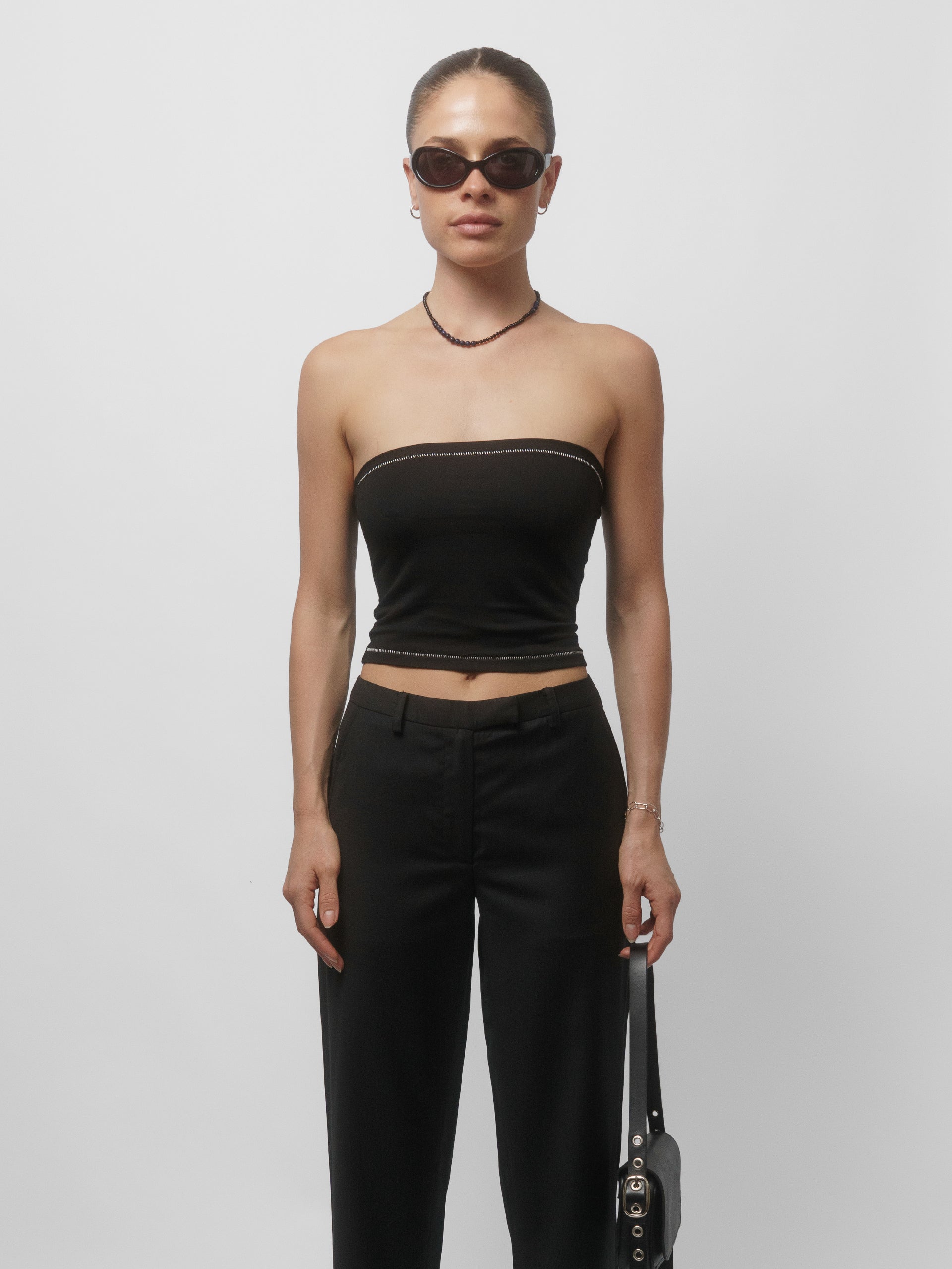 A 90s essential reimagined, the Romy Bandeau is sleek and form-fitting, finished with The Lair’s signature white stitch. Wear it with the matching Romy Trousers or pair it with low-slung pants or a silk skirt for a look that channels effortless SJP energy.