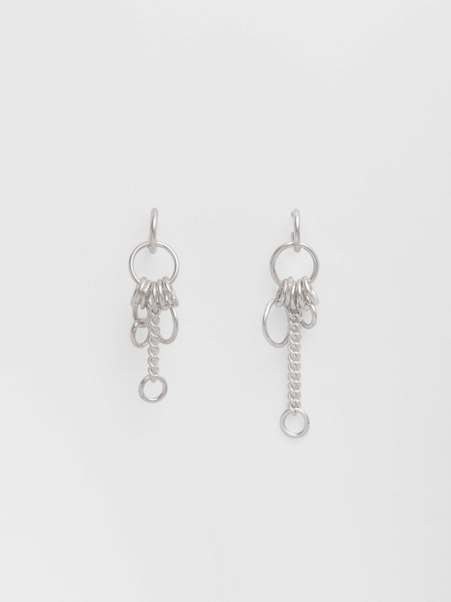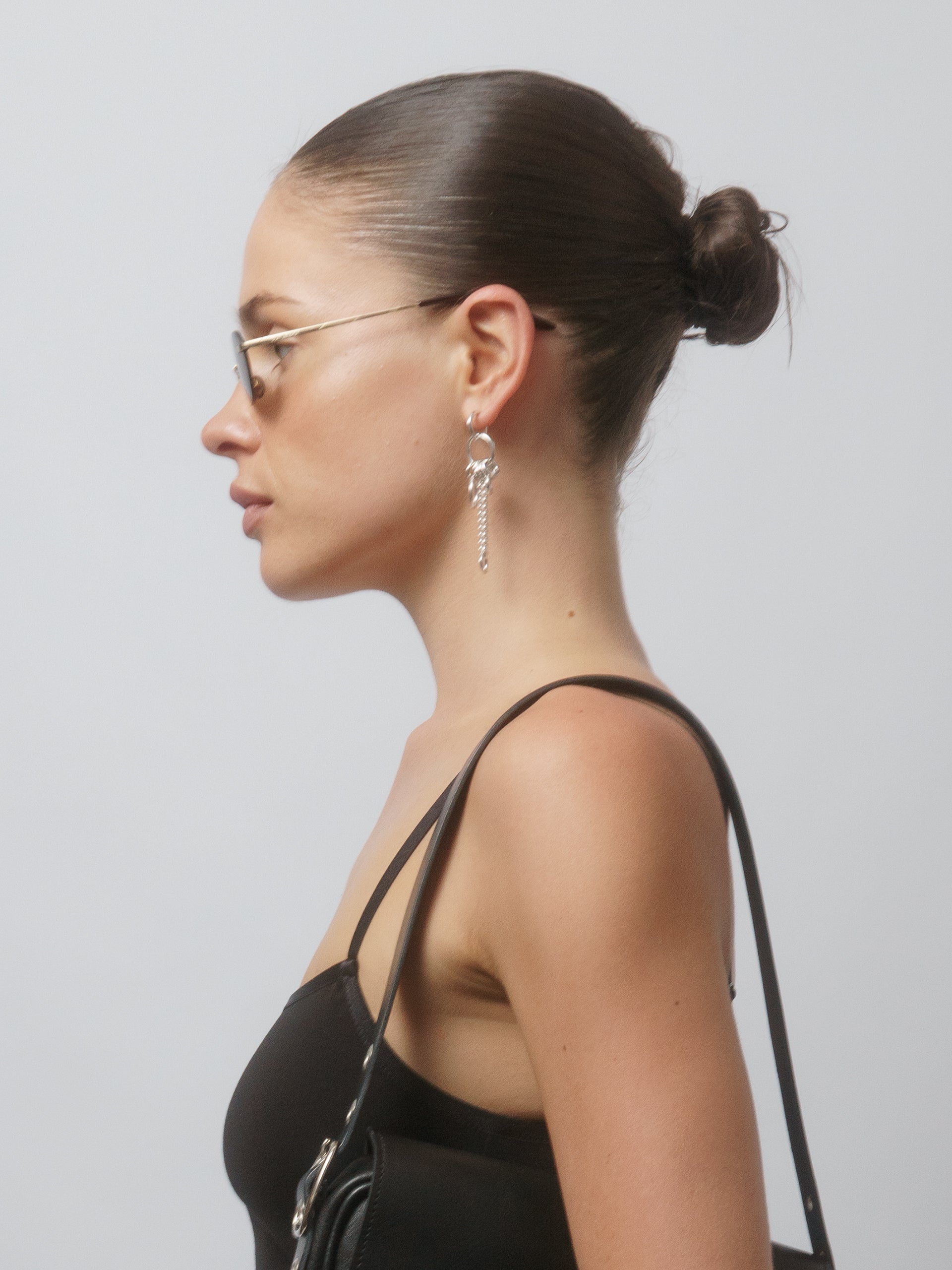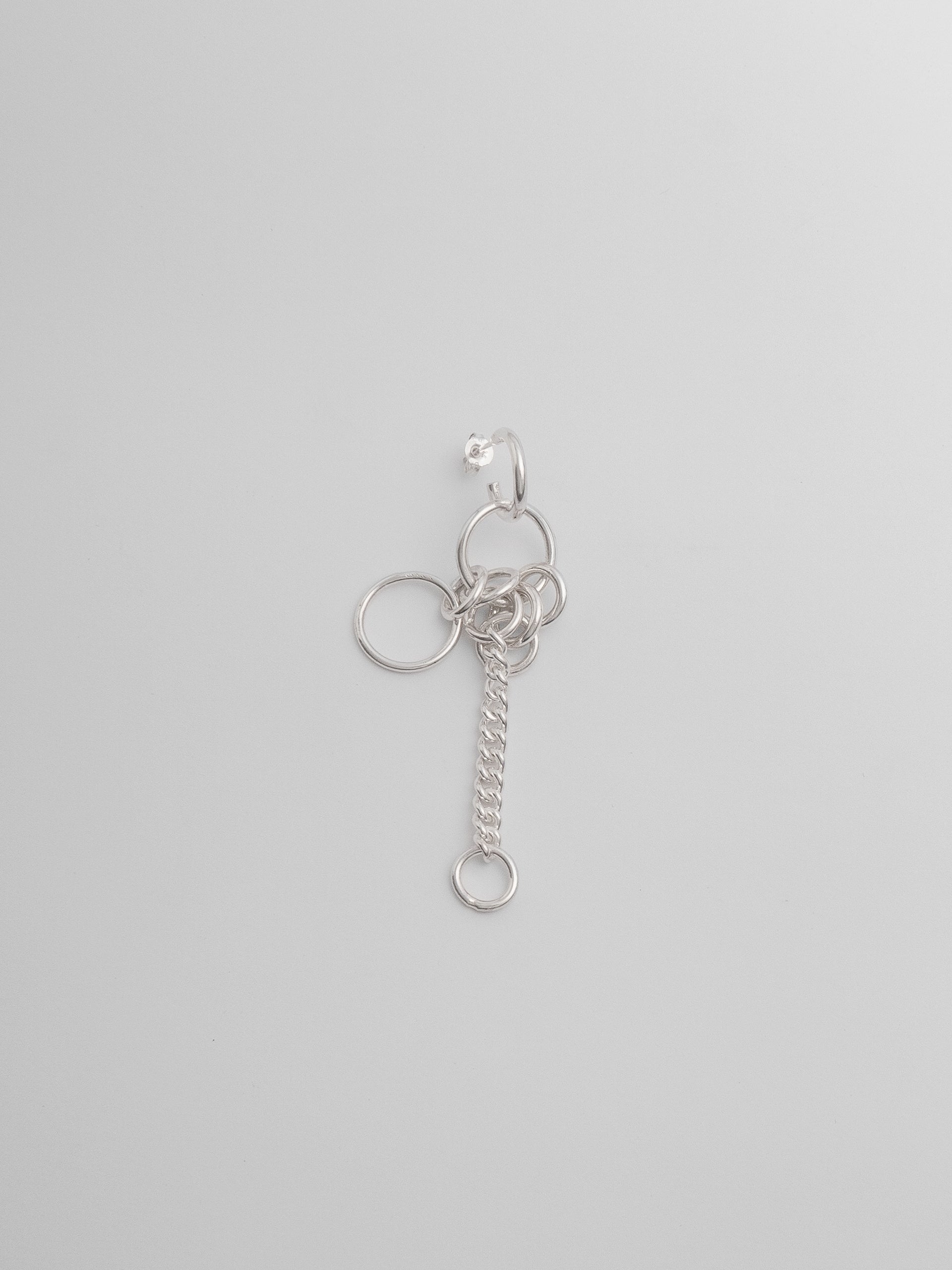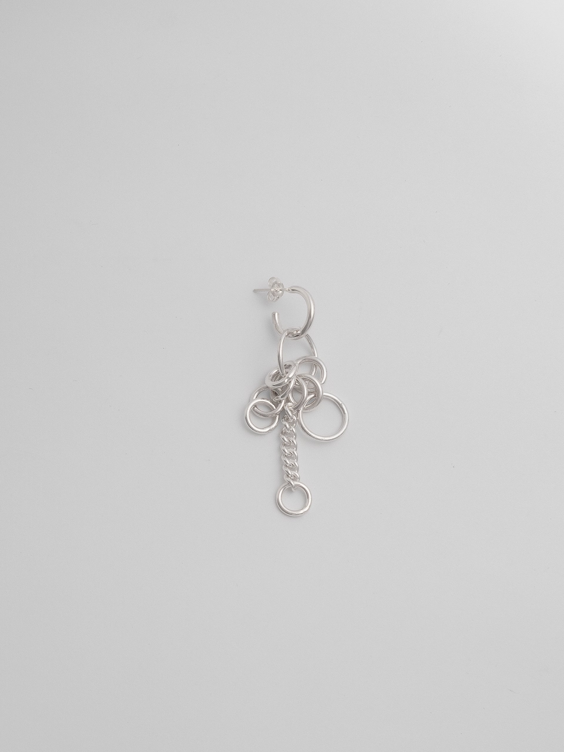 Inspired by the Japanese word for "bubble," the Baburu Earrings are designed and handmade in The Lair's neighbouring design studio. Crafted from .925 sterling silver, these earrings feature an eclectic combination of circles and chains, suspended from a classic hoop. The result is a striking, dynamic piece that brings movement and texture to any look.