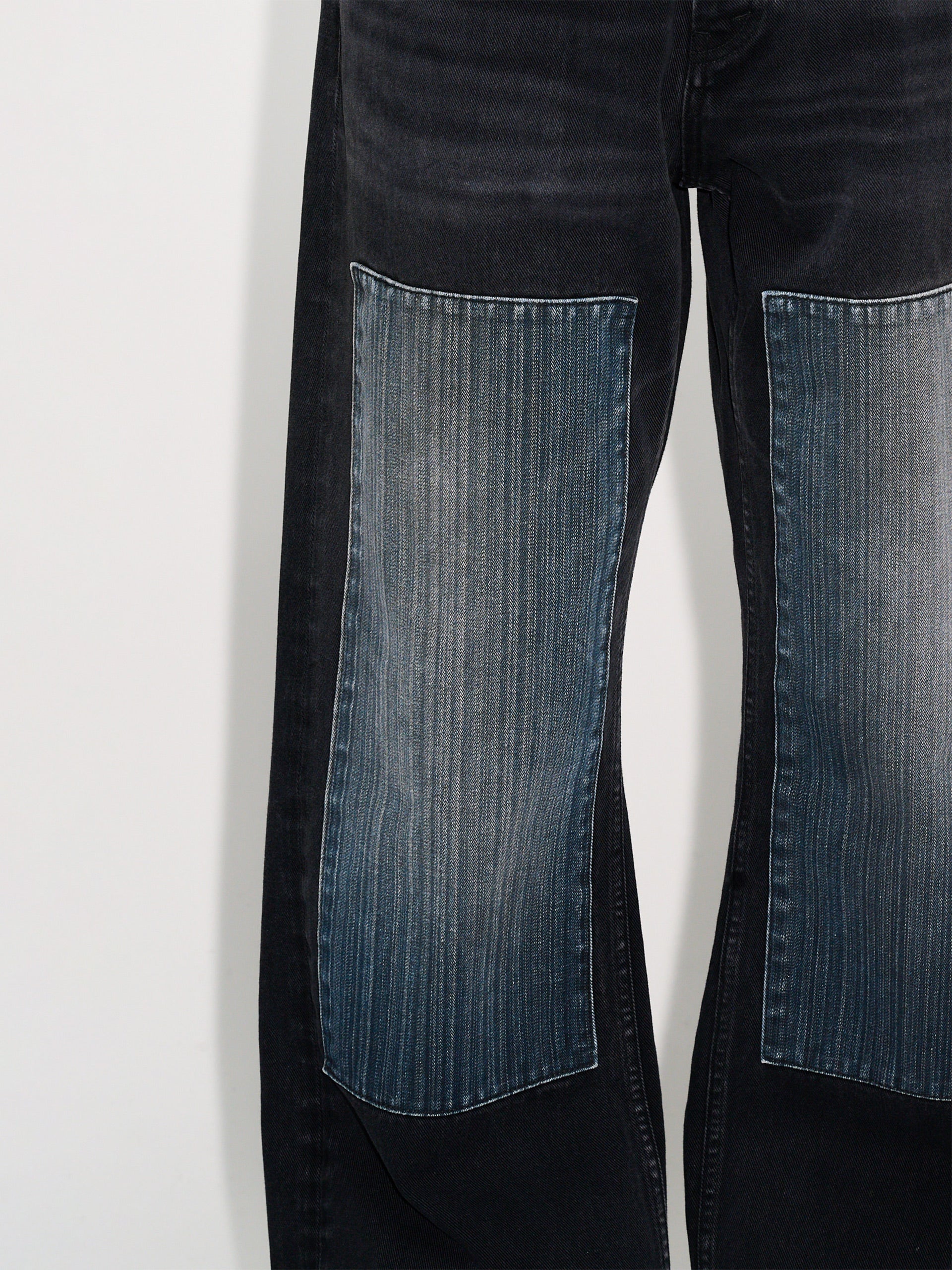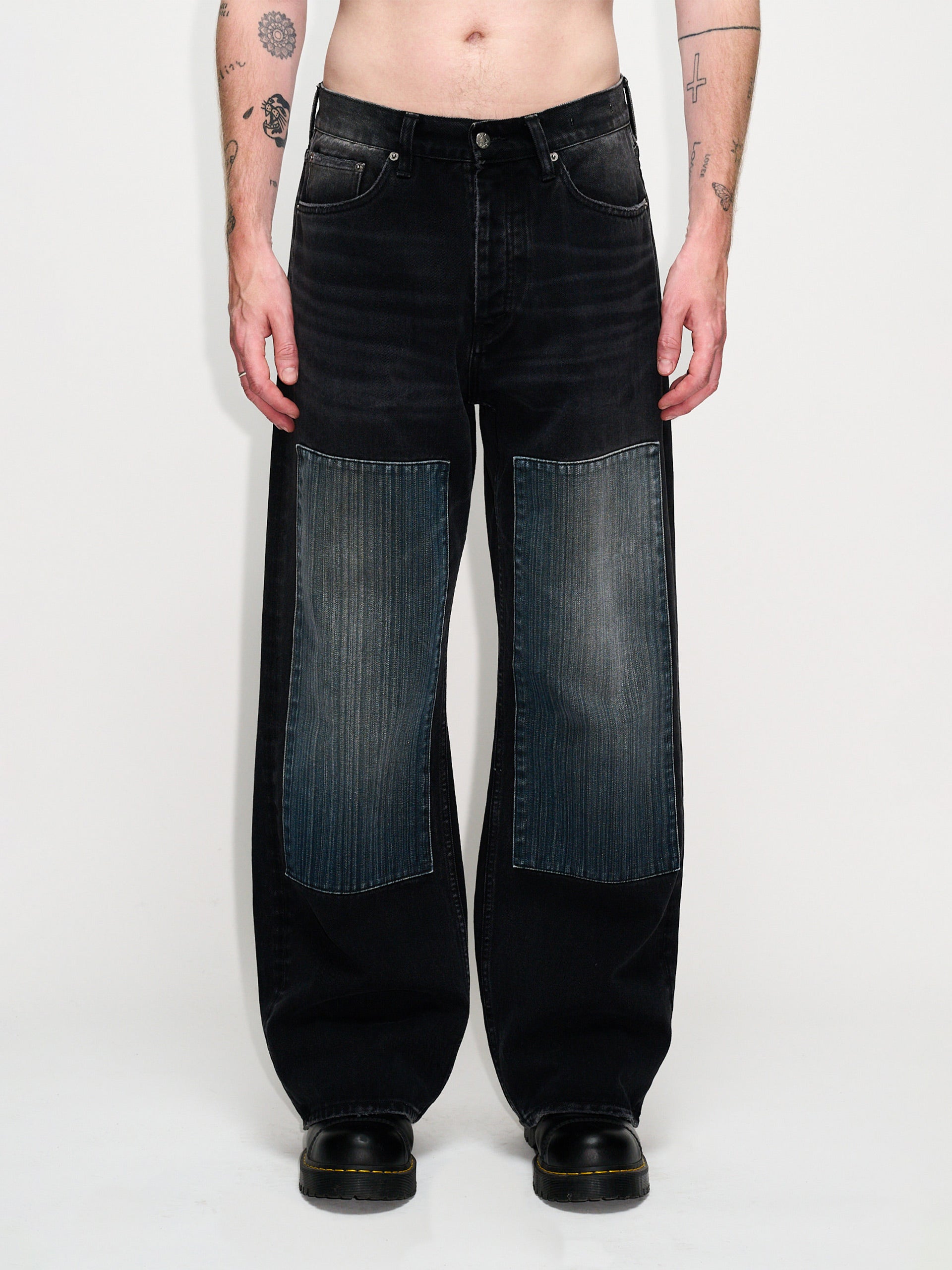 Criss Jeans are a relaxed five-pocket style cut from rigid 100% certified organic cotton. These 5-pockets jeans have a wide leg silhouette with a dropped crotch and loose fit. Details include HOPE branded denim buttons and trims. This wash features indigo knee patches and a slightly faded, vintage look. All HOPE denim washes are achieved with advanced techniques that drastically reduce the amount of energy, chemicals, and water used.