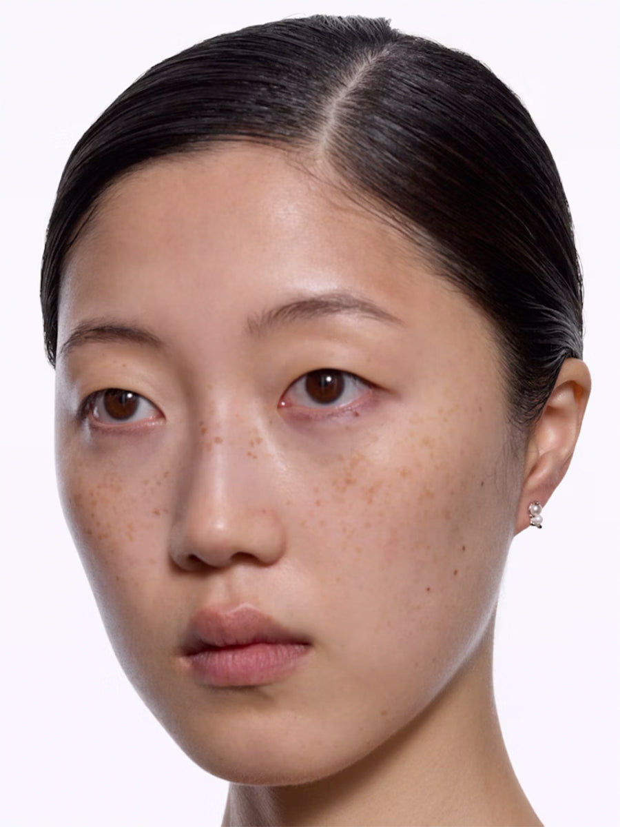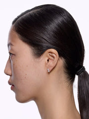 A stud set with two pearls in a warped prong setting, skilfully crafted in recycled sterling silver.