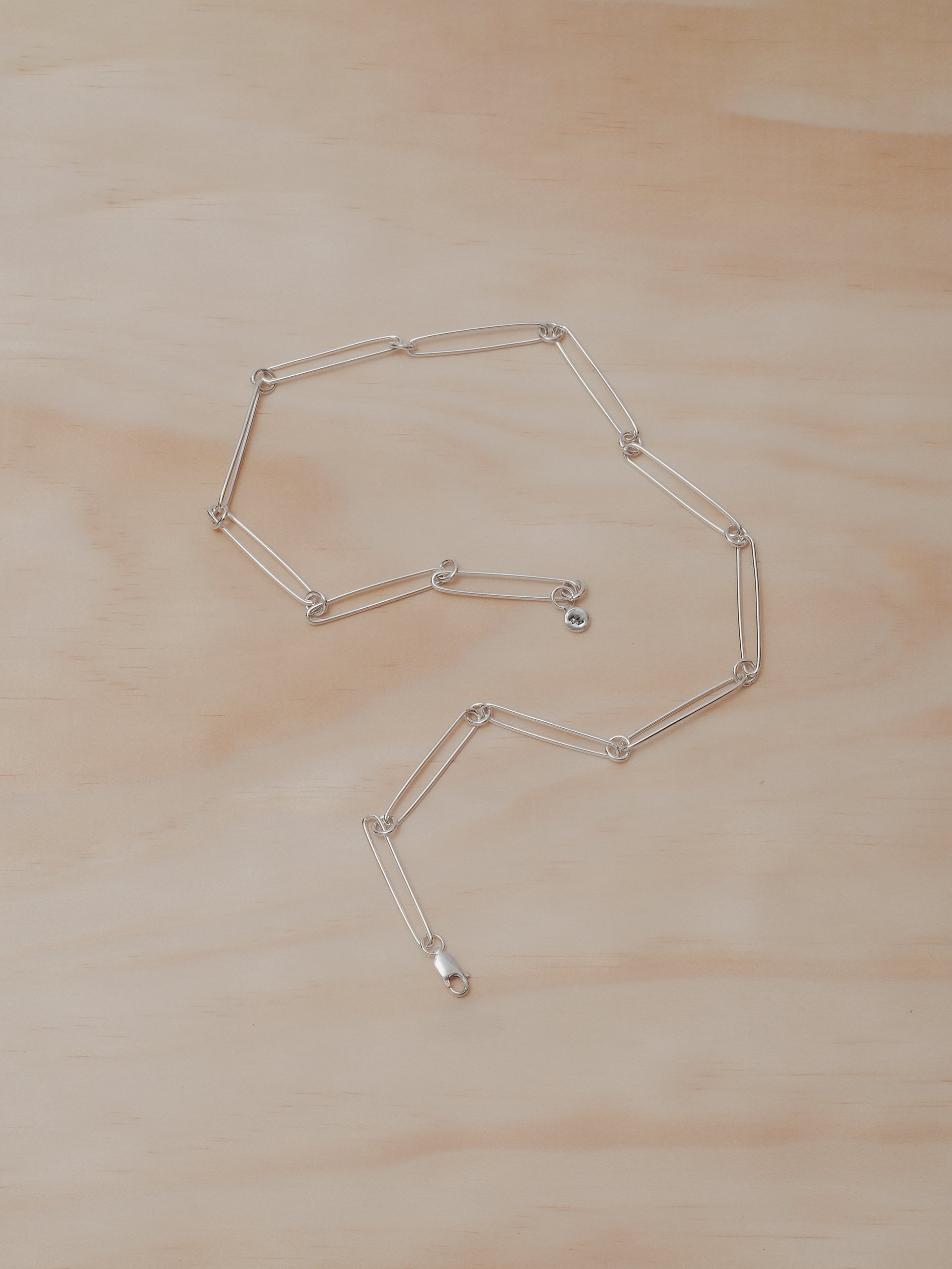 Designed and handcrafted in The Lair Studio, Newcastle, the Camille Micro Chain refines the essence of our original Camille design into a lighter, shorter, and more understated form. Handmade from .925 sterling silver, the chain pairs subtly imperfect micro pins with fine circular links, creating a quiet interplay of texture and rhythm. This edition sits cleanly at the collarbone - a minimal choker-style chain that speaks softly, yet with intention. Rooted in our Wabi-Sabi jewellery philosophy, each piece carries the subtle individuality of the hand that formed it.