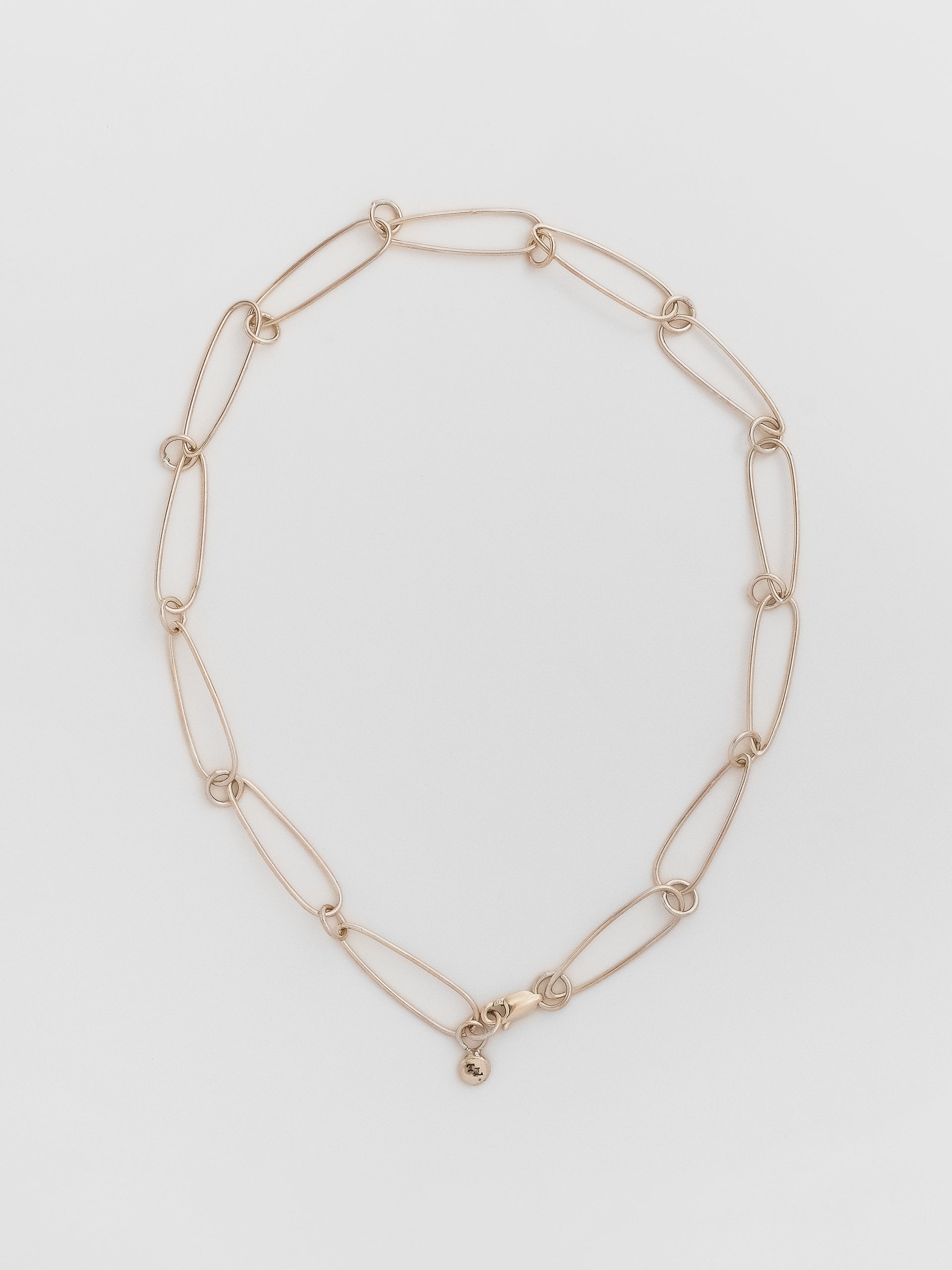 - Fine alternating oval “tear” links with circular connectors