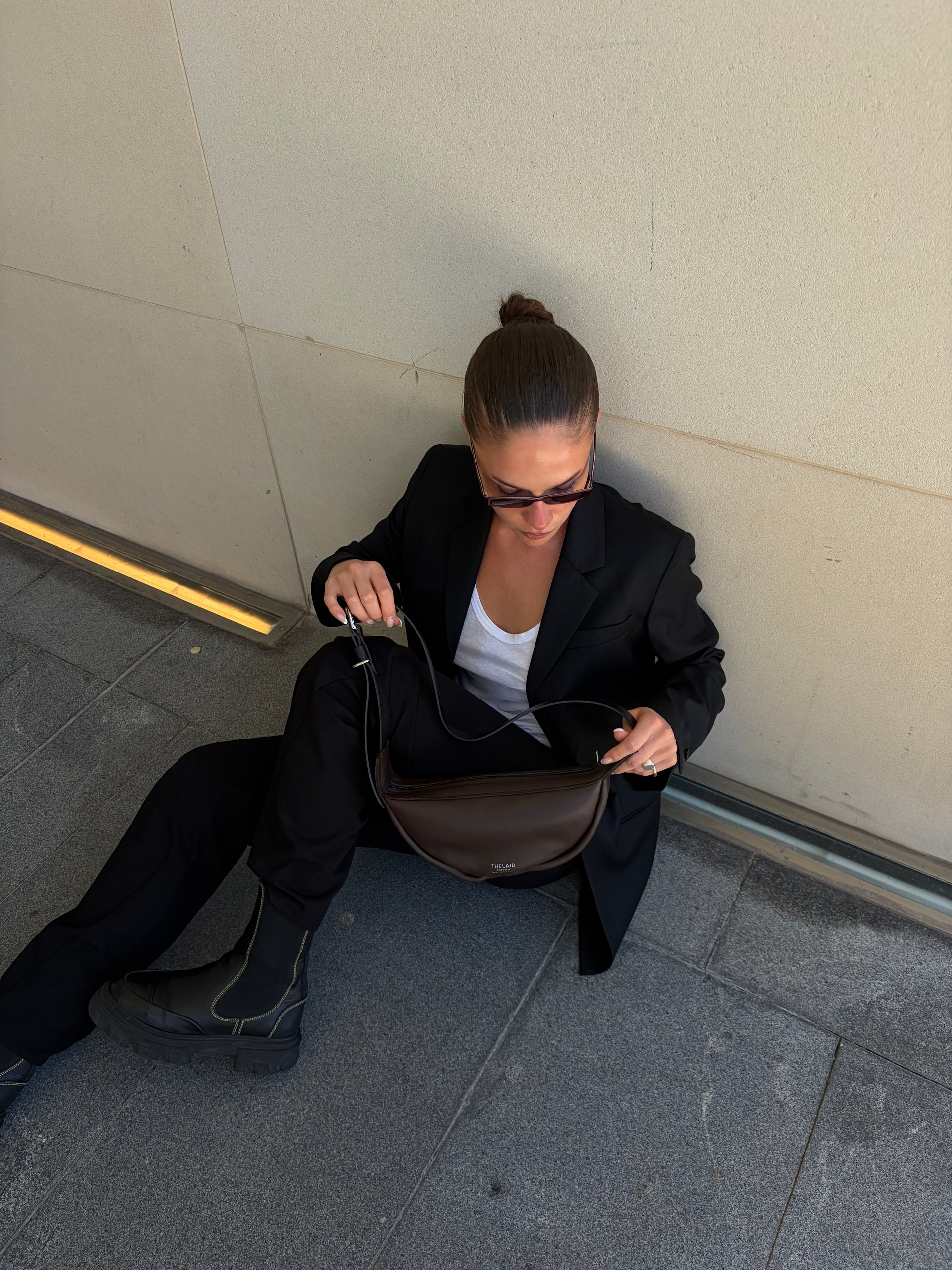 The Lair Slouch Zipper Bag Large Mahogany Silver