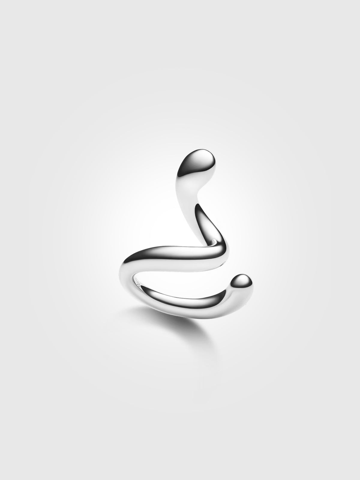 Skilfully crafted in recycled sterling silver, this coil earcuff wraps effortlessly around the conch, finished with a delicate swirl detail that catches the light. Hollow-formed for light wear and comfort, it’s available as a left or right piece for a perfectly contoured fit.