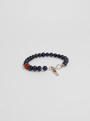 Japanese for fish eggs, 'Tobiko' is designed in The Lairs neighbouring design studio. Tobiko harmonises an assortment of black keshi pearls with a single prominent natural carnelian, threaded onto 9ct yellow gold string. A distinct handmade fish hook clasp is a feature designed to be worn alongside the beads. Tobiko is finished with The Lairs signature hallmark stamped totem charm.