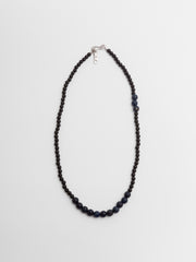 Named after the Japanese word for moon, Tsuki is a testament to quiet elegance. Handmade from Black Onxy and Lapis Lazuli, this asymmetrical design features a unique balance of smaller beads, punctuated by three larger stones. The garnet sections add depth and contrast, while the handmade fish hook clasp and sterling silver slab, carefully flattened in The Lair’s studio, bring a subtle point of difference. Inspired by the natural world, Tsuki is a refined addition to any collection, imbued with a sense of quiet beauty.