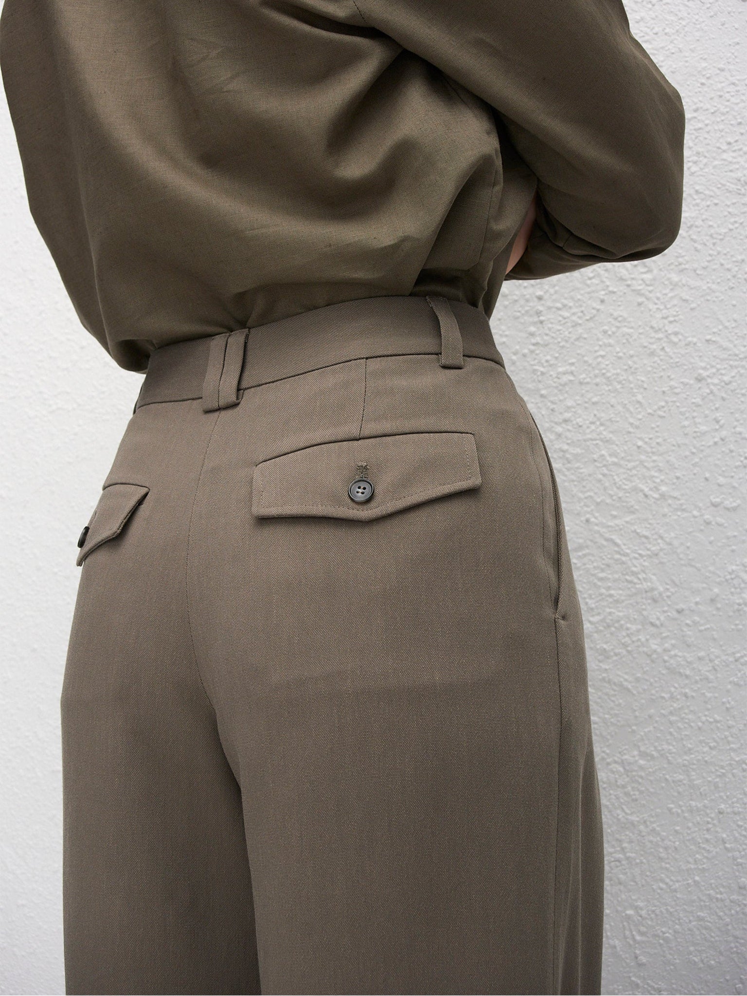 Matteaus Tailored Pleat Trousers are a modern closet staple with endless versatility. Featuring a wide, tapered leg and exposed back pocket detailing in a viscose fabrication. For a tonal look, style with a button-up shirt, or a Black Baby Tee for an easy everyday look.
