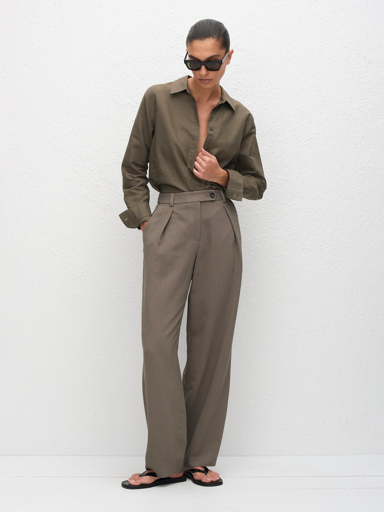 - Cristina is 178cm and wears the Tailored Pleat Trouser in Myrtle in a size 2