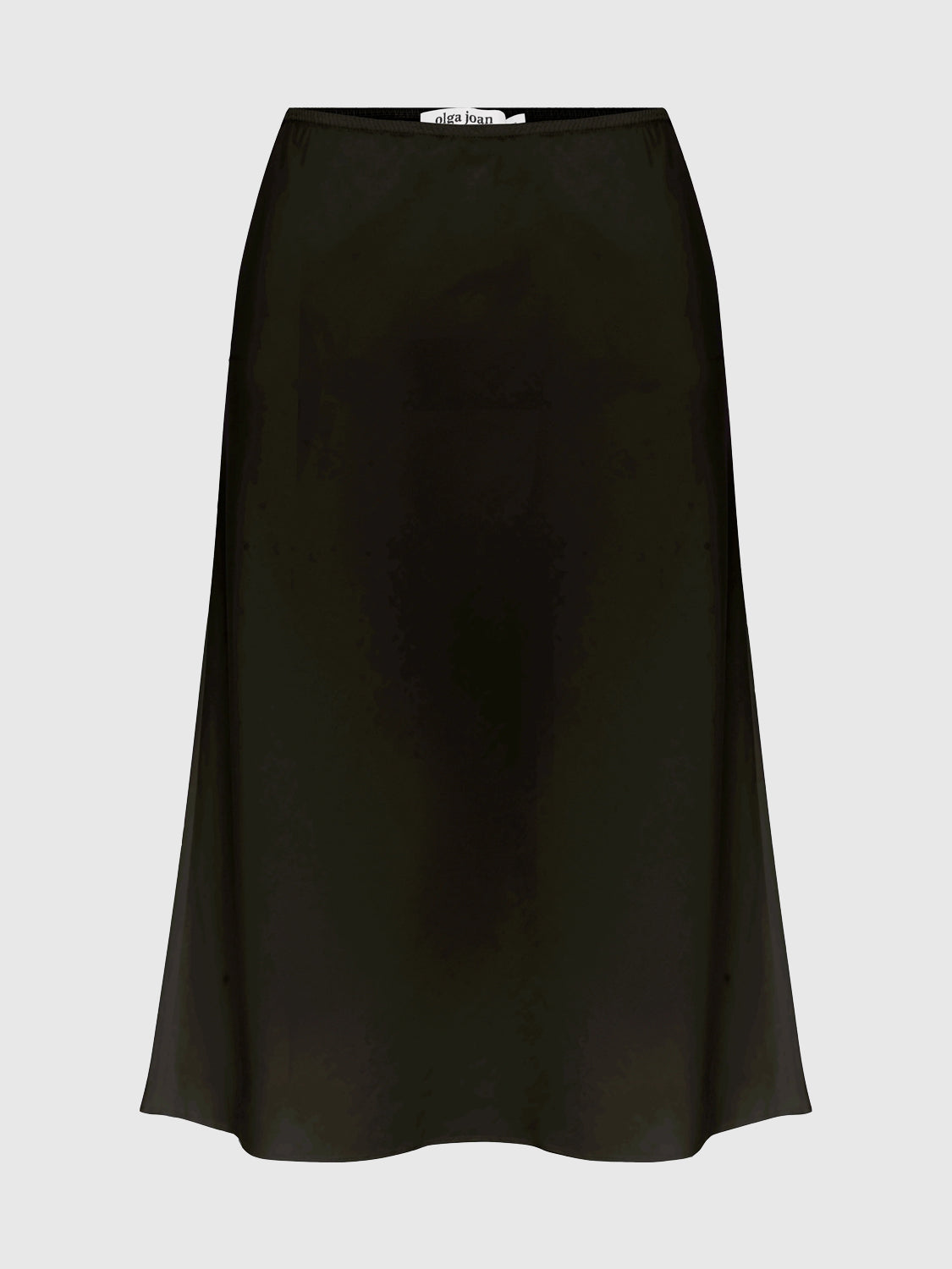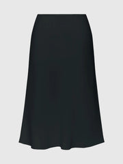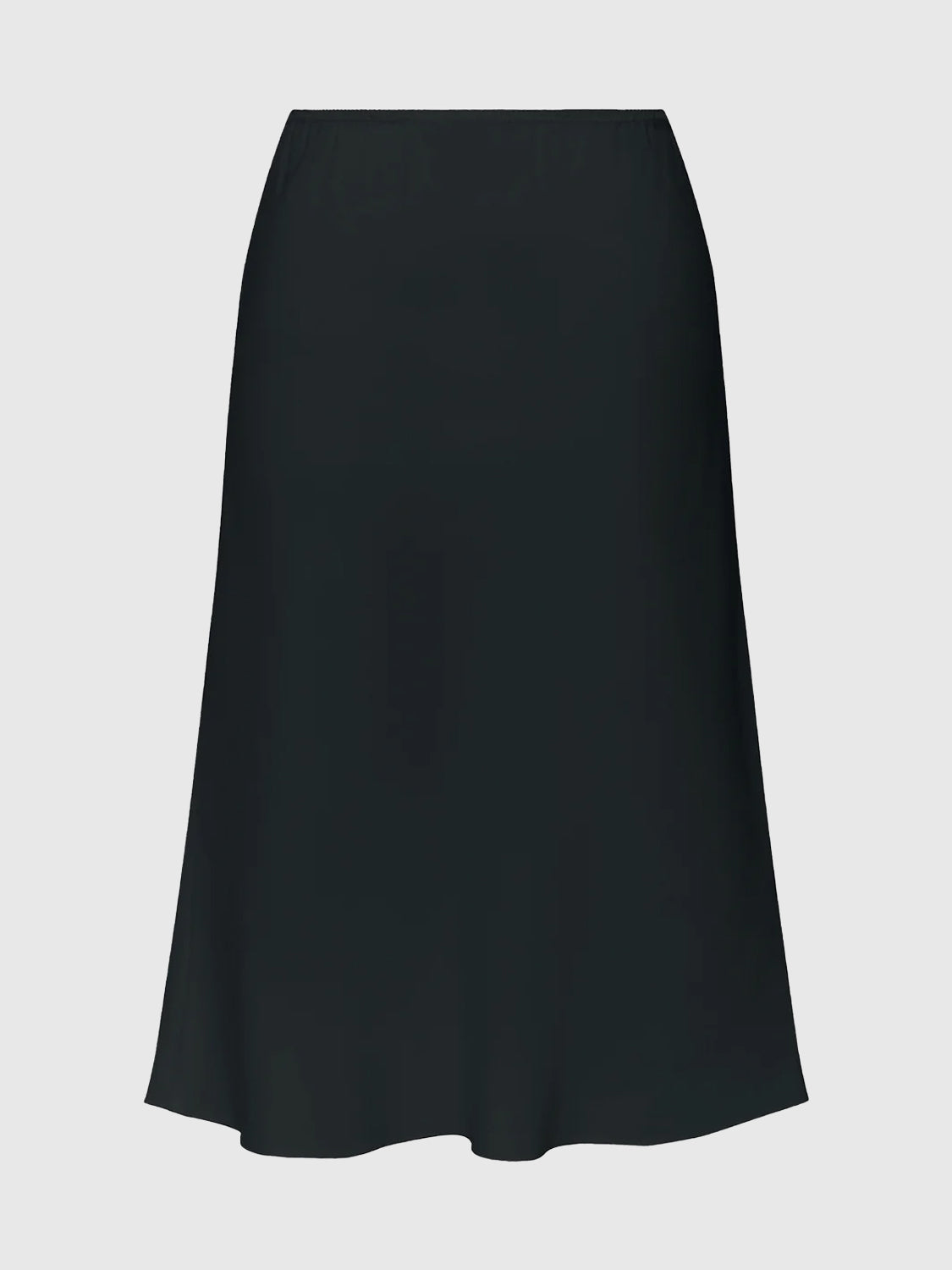 Bias-cut skirt in plain-weave Tencel, featuring a knee-length hemline and an elastic waistband with zig-zag stitching. Lightweight and breathable with a soft, fluid drape.