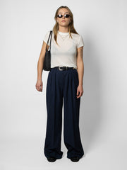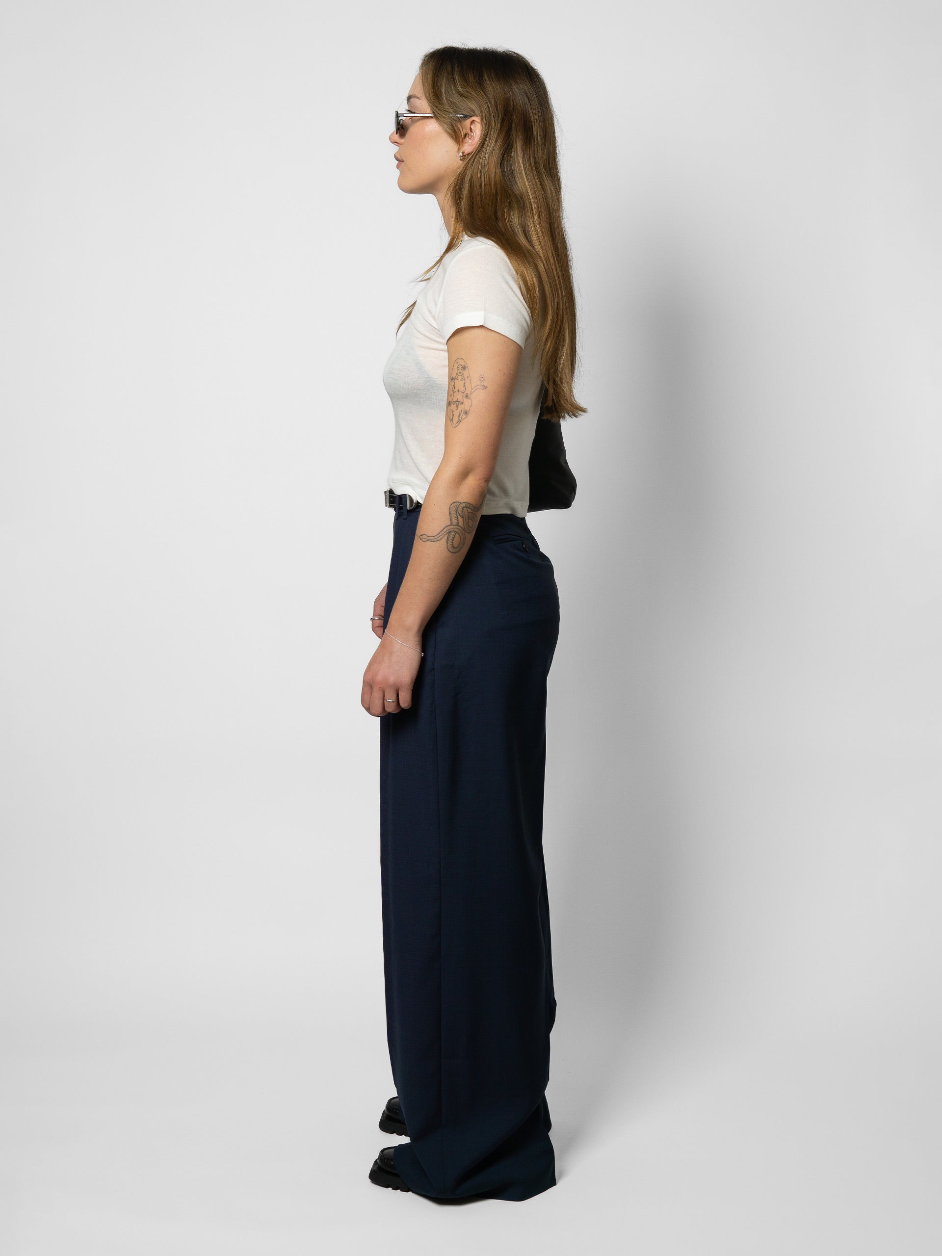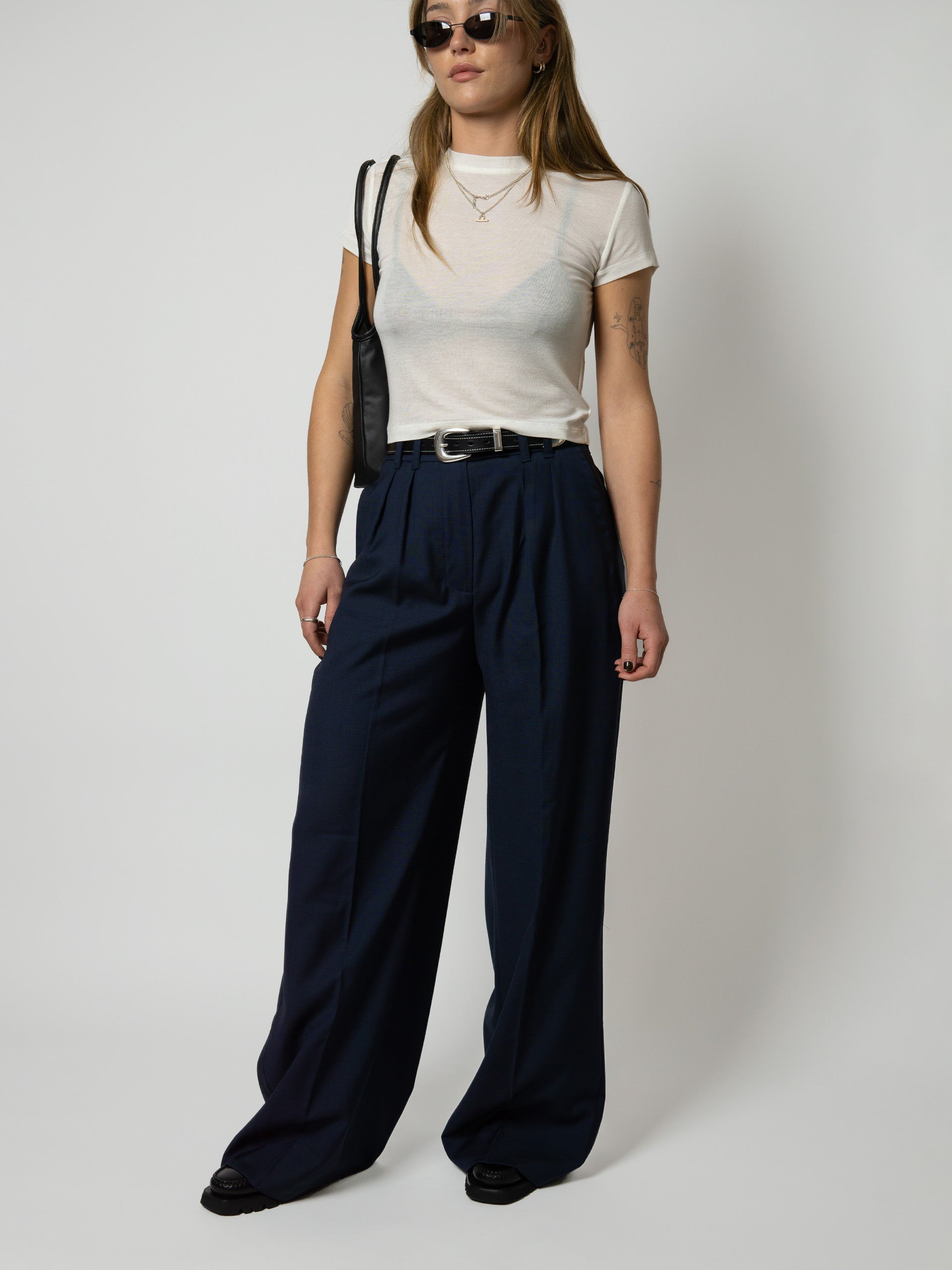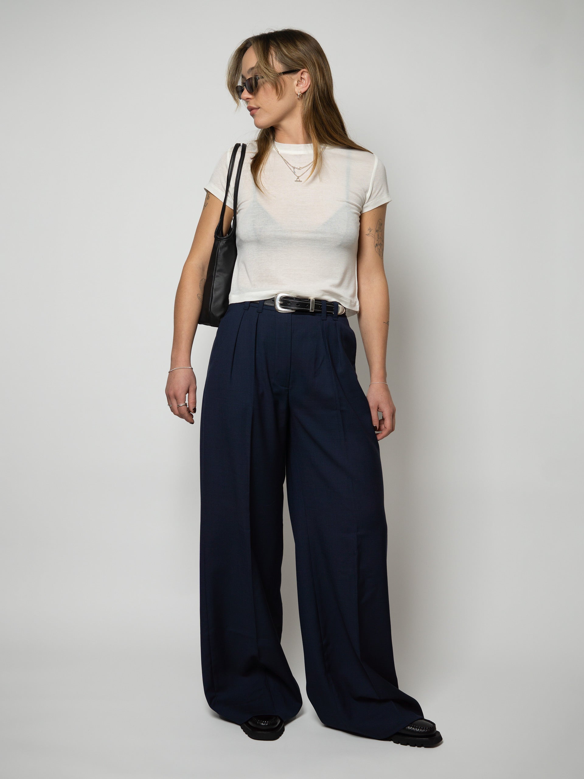 The Lair weaves a sense of effortless and androgynous tailoring into their collections, the Otis Trouser being the perfect example. A high-rise waist compliments double belt loops, sharp pleats down the front, and an overstated floor-grazing silhouette. Crafted from a lightly textured 100% Wool fabrication, the Otis Trouser will see you through many seasons to come.