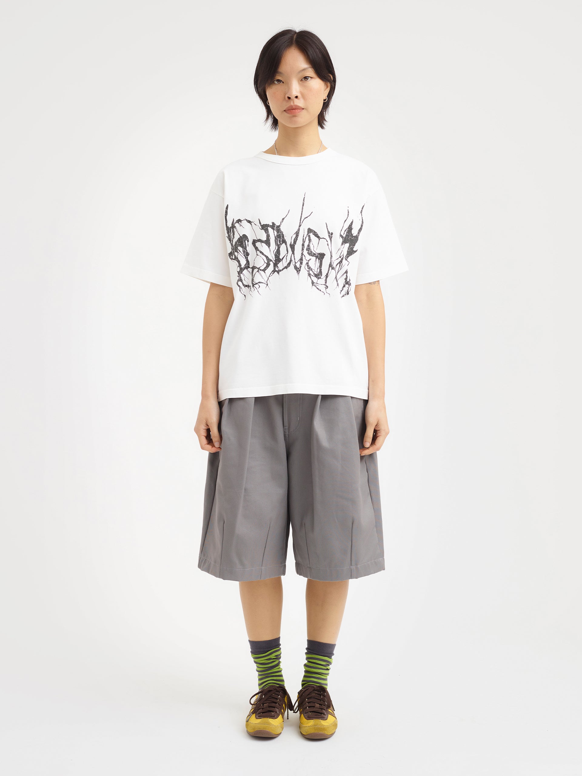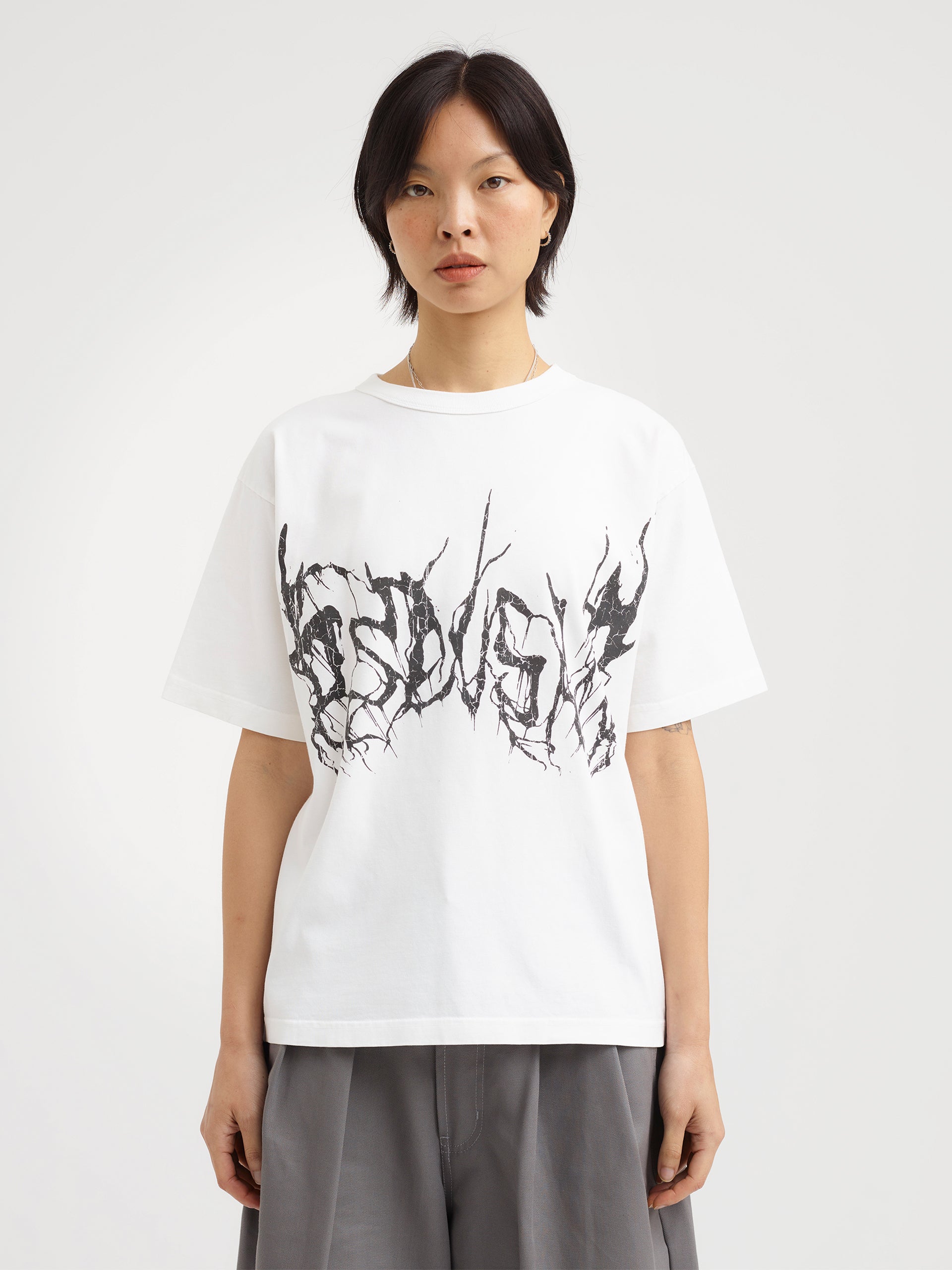 Crafted from heavyweight 220gsm cotton jersey, the Metal Tee is knit to custom specifications for a premium hand feel. Garment-dyed for a vintage character, it’s cut wide and relaxed on the body with a subtle crop and finished with a sturdy binding collar. A screenprinted chest graphic adds a bold point of distinction. Made in Australia.