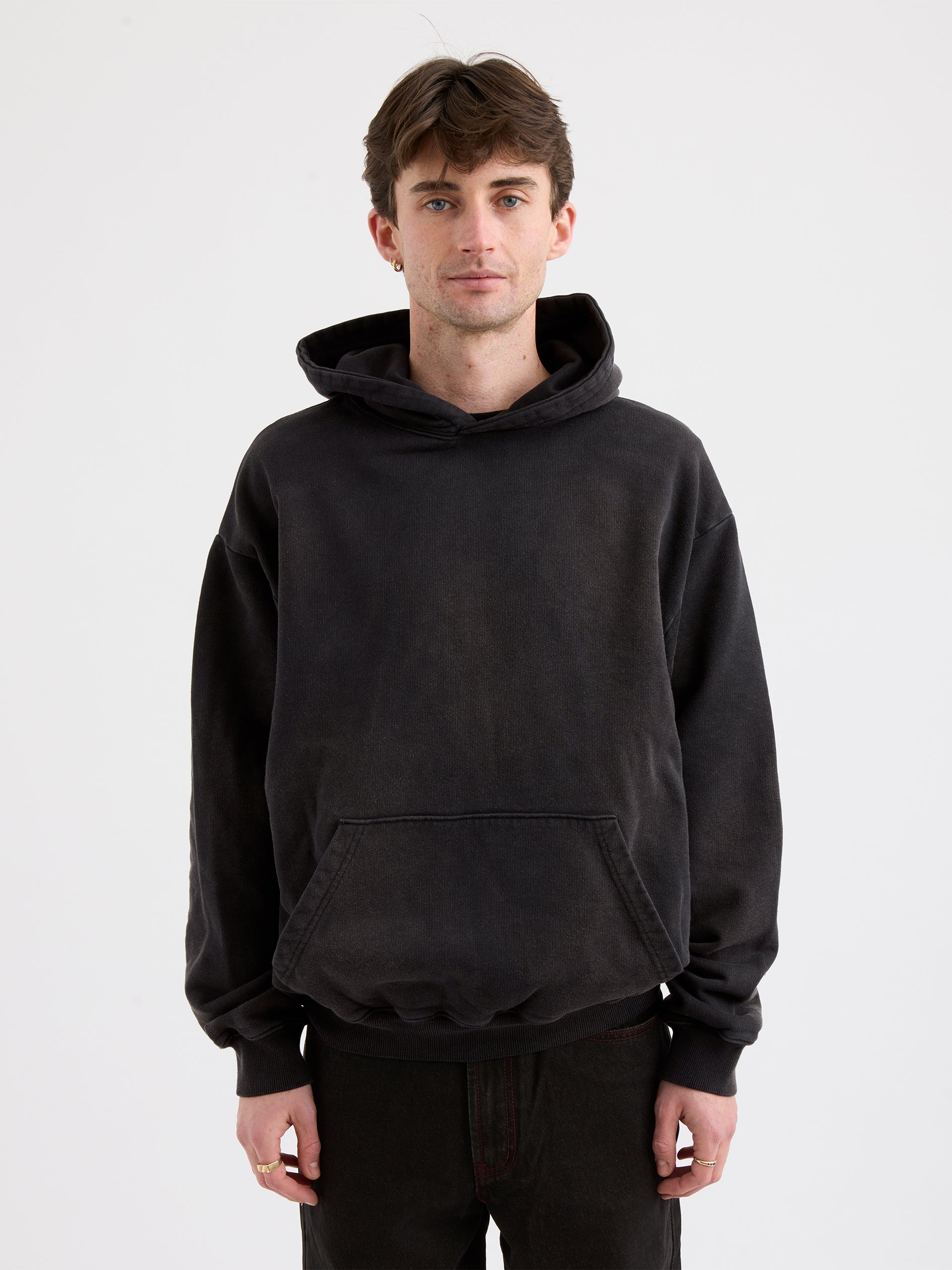 The Pareidolia Hoodie is crafted in heavyweight 450gsm cotton French terry, garment-dyed and hand-faded for a lived-in, vintage character. Designed with an oversized fit and finished with sturdy ribbing at the cuffs and hem, it balances structure with ease. Made in Australia.