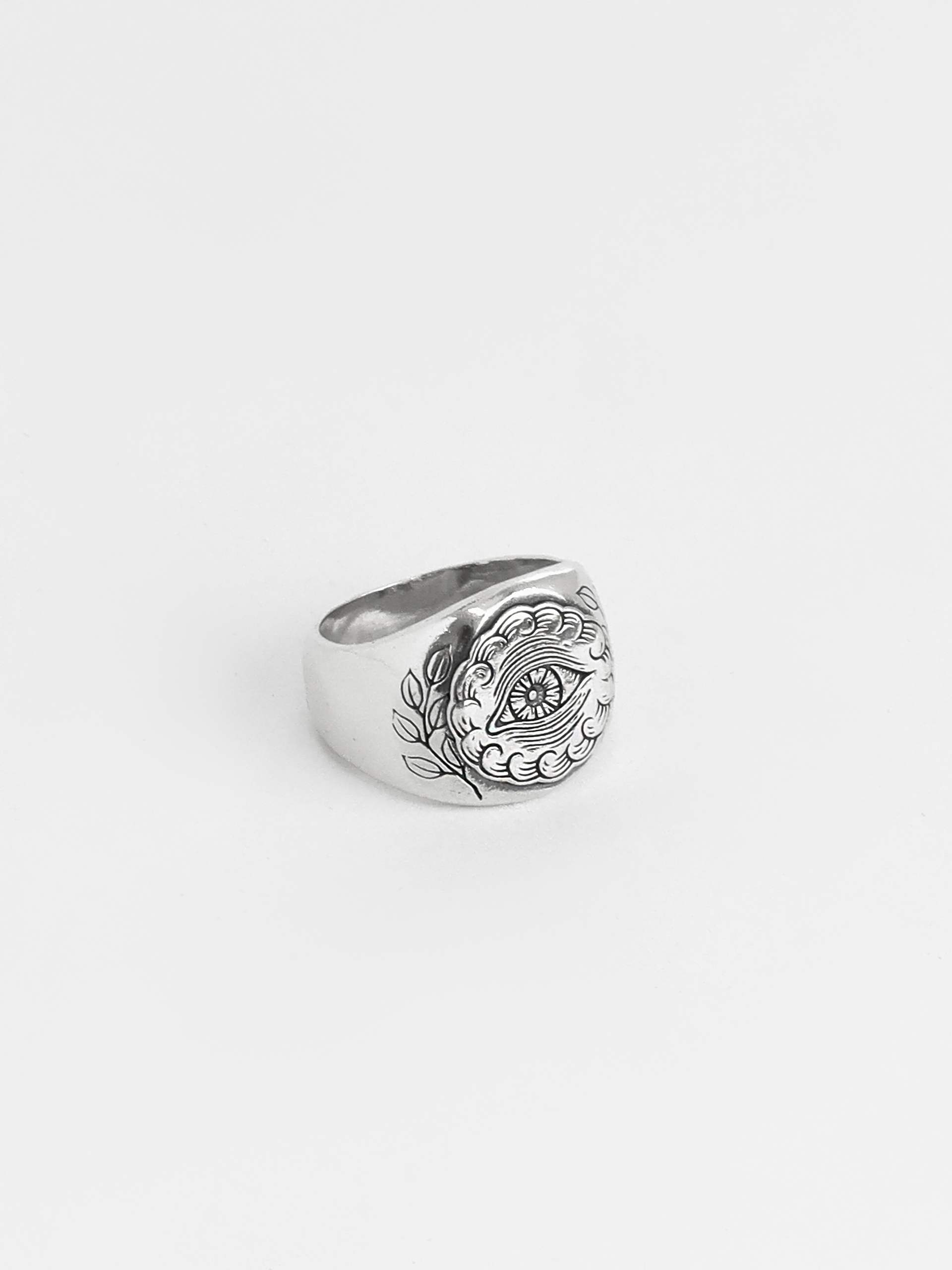The All Seeing Eye Signet by Digby & Iona is crafted from 100% reclaimed and recycled oxidised sterling silver.