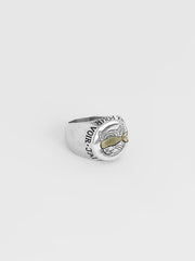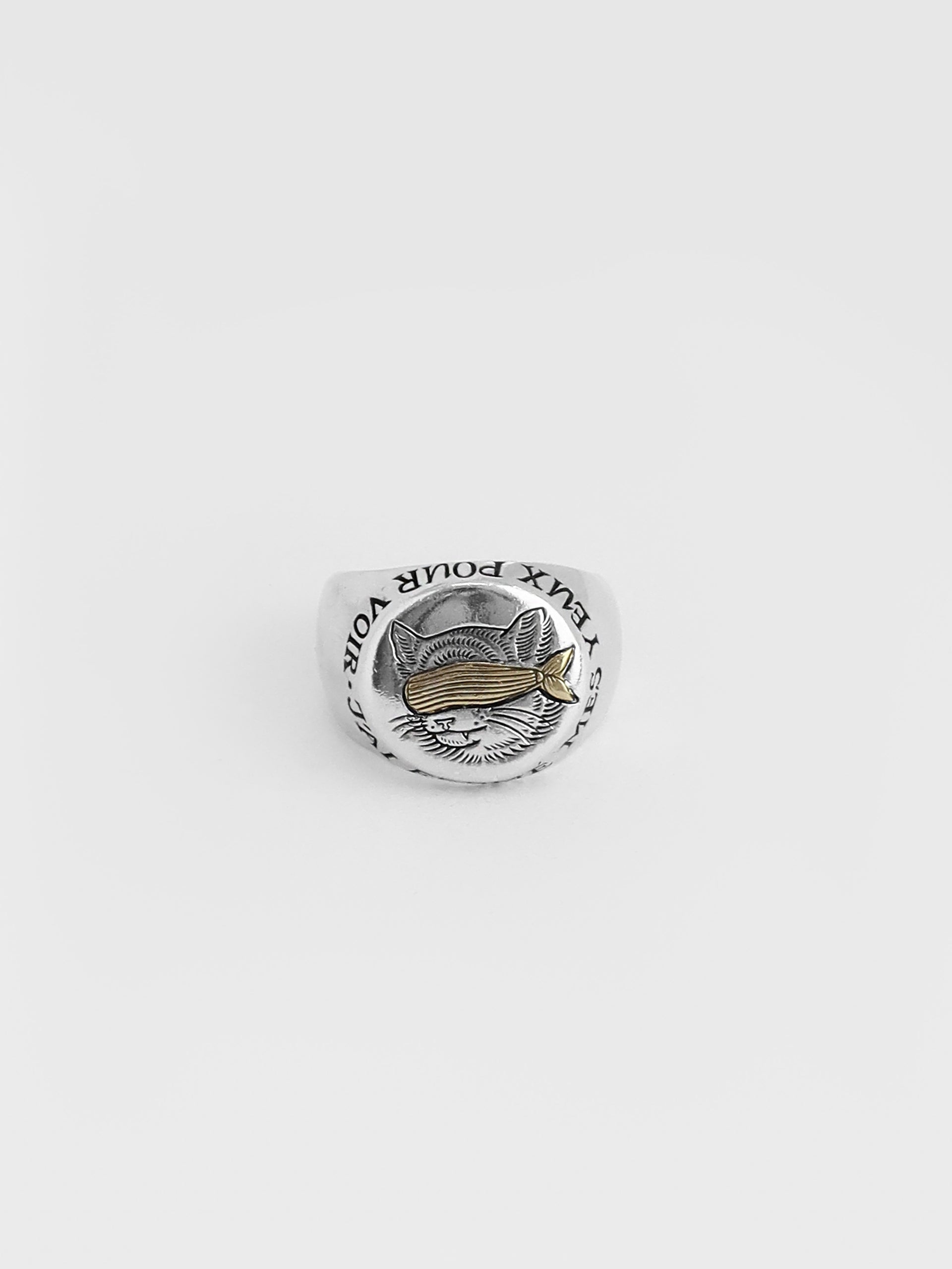 The Gauguin Signet Ring by Digby & Iona is inspired by a quote from French painter Paul Gauguin. 'Jai Ferme Mes Yeux Pour Voir' translates to 'I shut my eyes in order to see', a message mirrored by the blindfolded cat engraved into the face of the signet.
