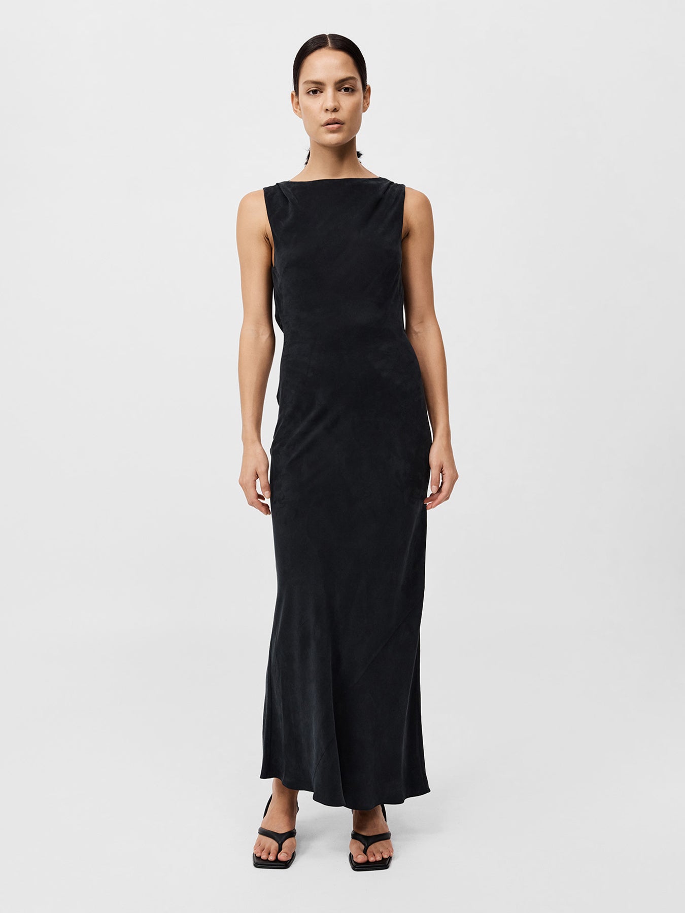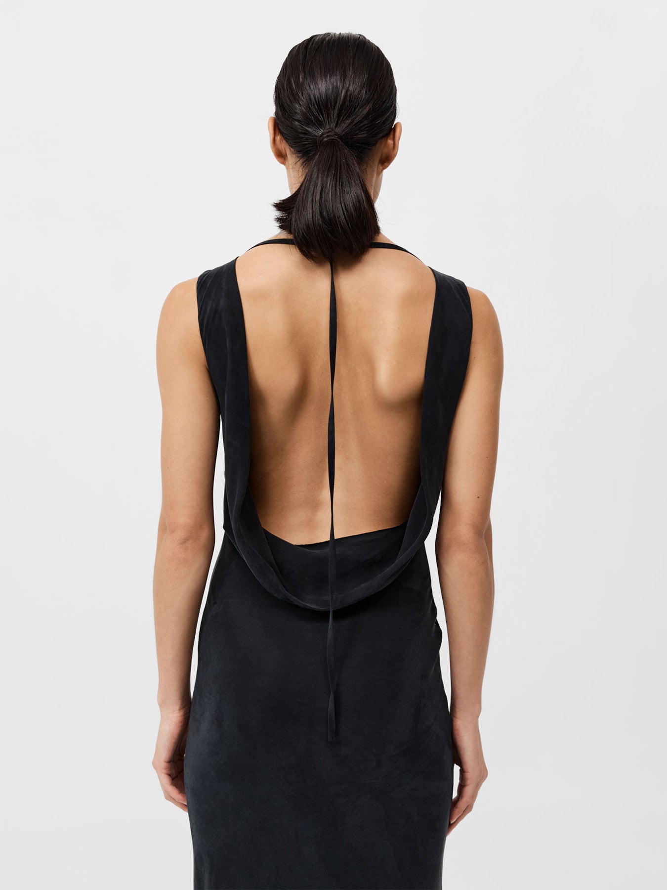 The Draped Cowl Dress features an adjustable neck strap for the perfect fit and an invisible side zip that maintains a sleek silhouette. Falling gracefully to a maxi length, the Draped Cowl Dress is highlighted by a low back, adding a hint of skin—perfect for any special occasion.