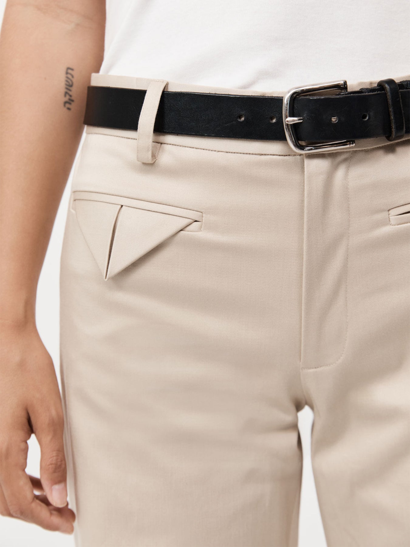 The Origami Pocket Trousers are designed with a mid-rise silhouette and a clean, straight-leg fit, balancing modern structure with understated elegance. Featuring unique front origami pocket details, belt loops and welt pockets. Perfect for both casual and elevated styling, the Origami Pocket Trousers offer a seamlessly refined polished finish.