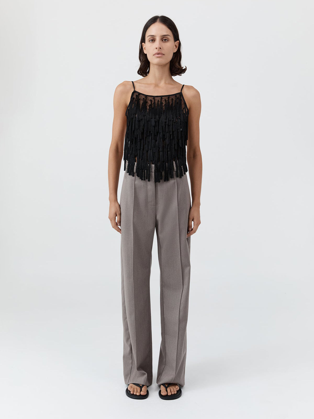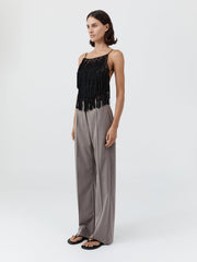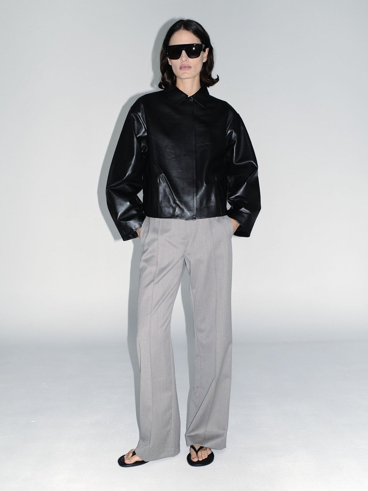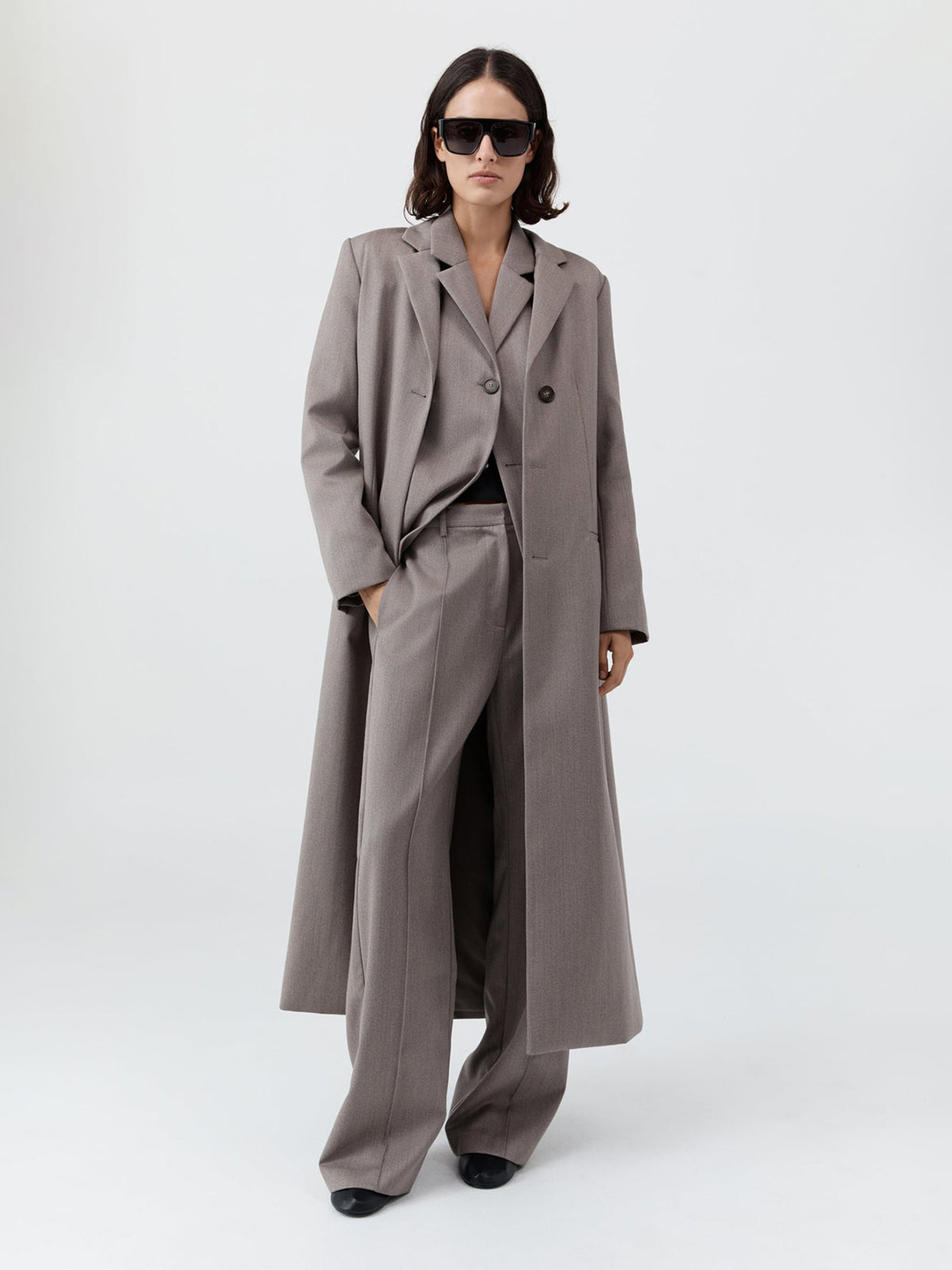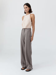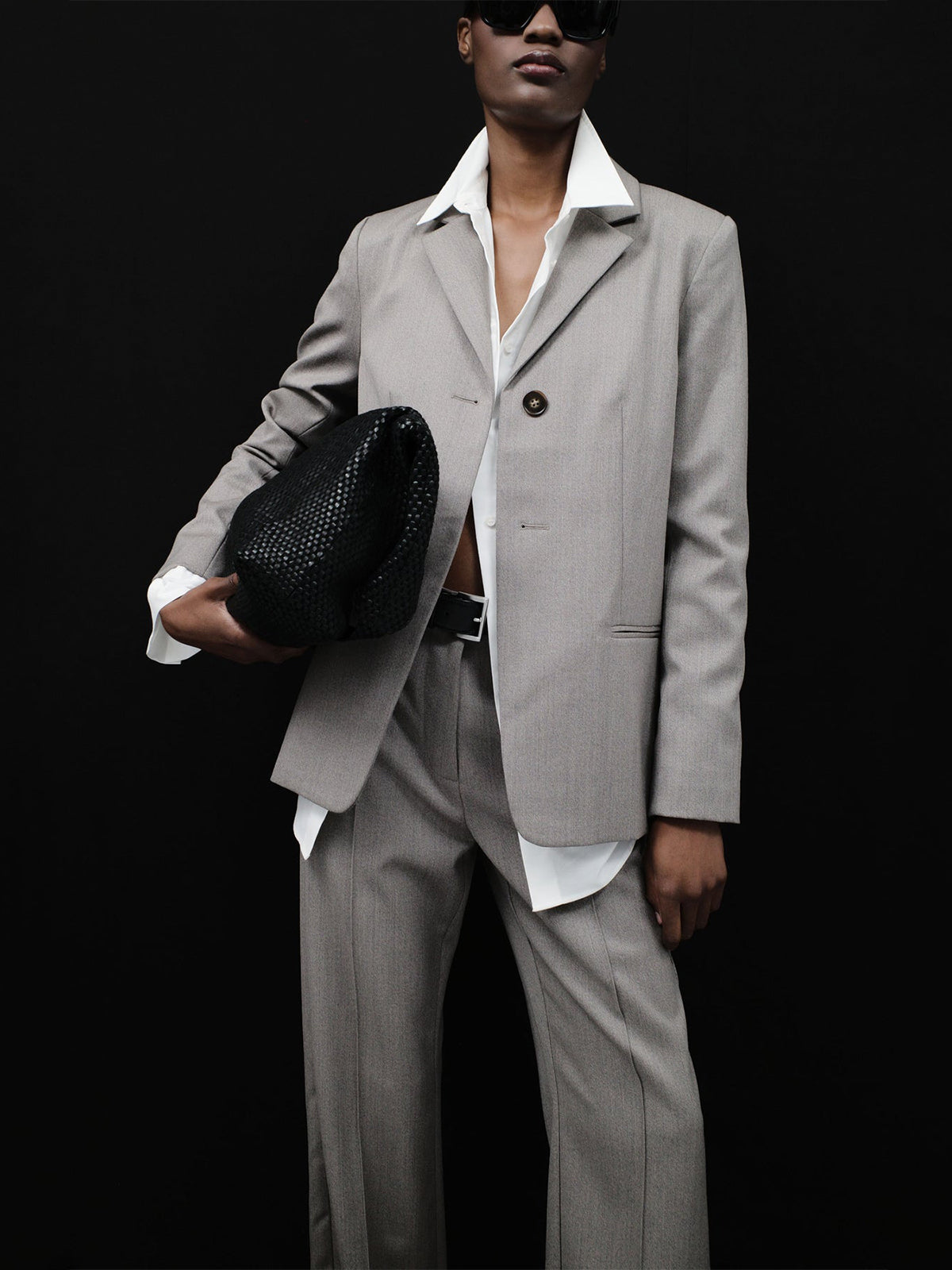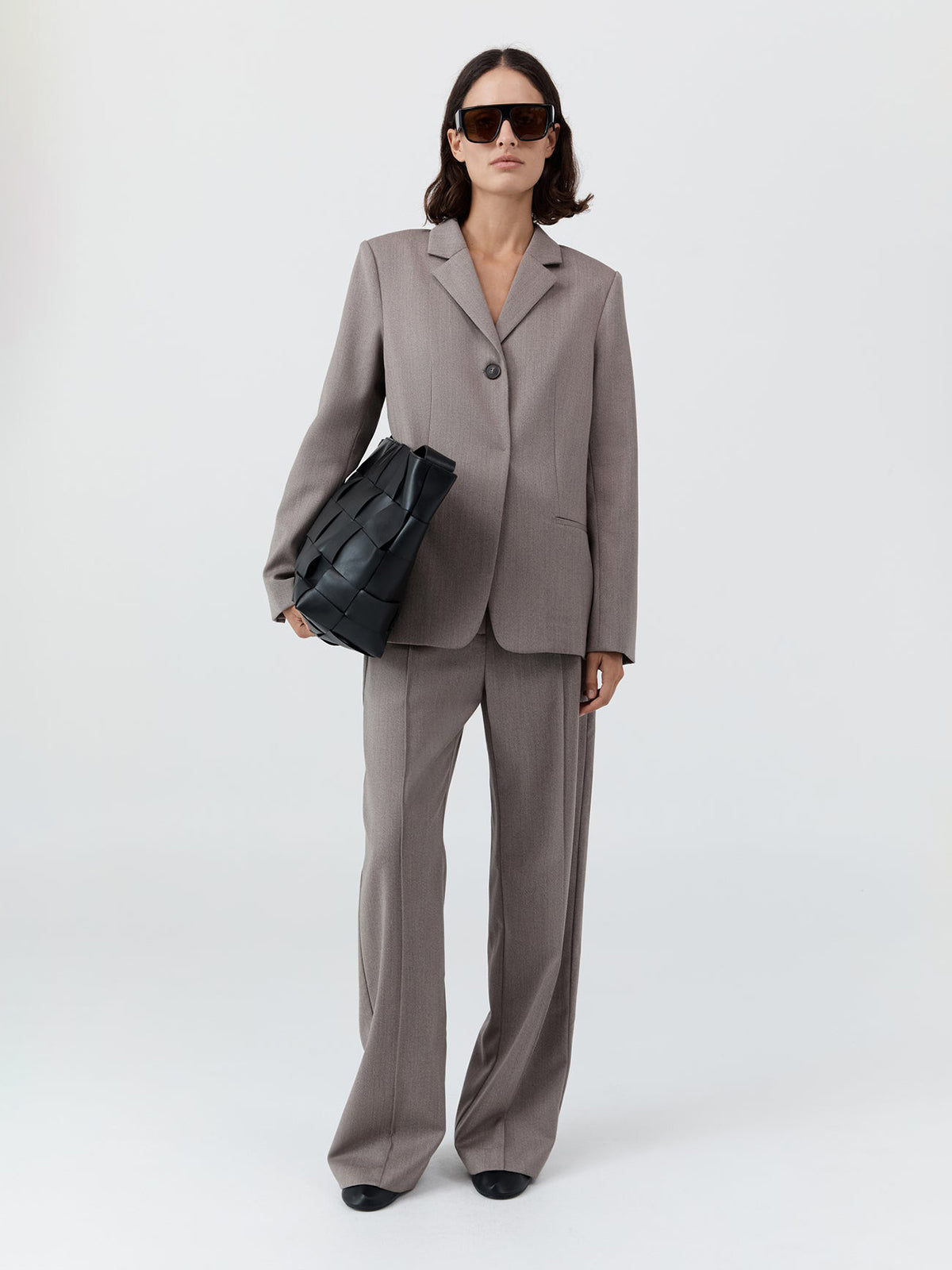The Oupa Pintuck Pants feature a waisted silhouette with a straight-slim leg and side seam pockets. Cut from a premium Wool blend, offering a balance of structure and sophistication. Finished with refined pintuck detailing, pair with the 90s Wool Blazer for a streamlined ensemble.