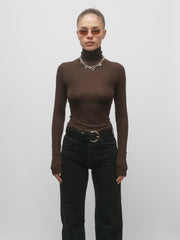 The Lair Apparel Anja Mock Neck Long Sleeve Top Cocoa