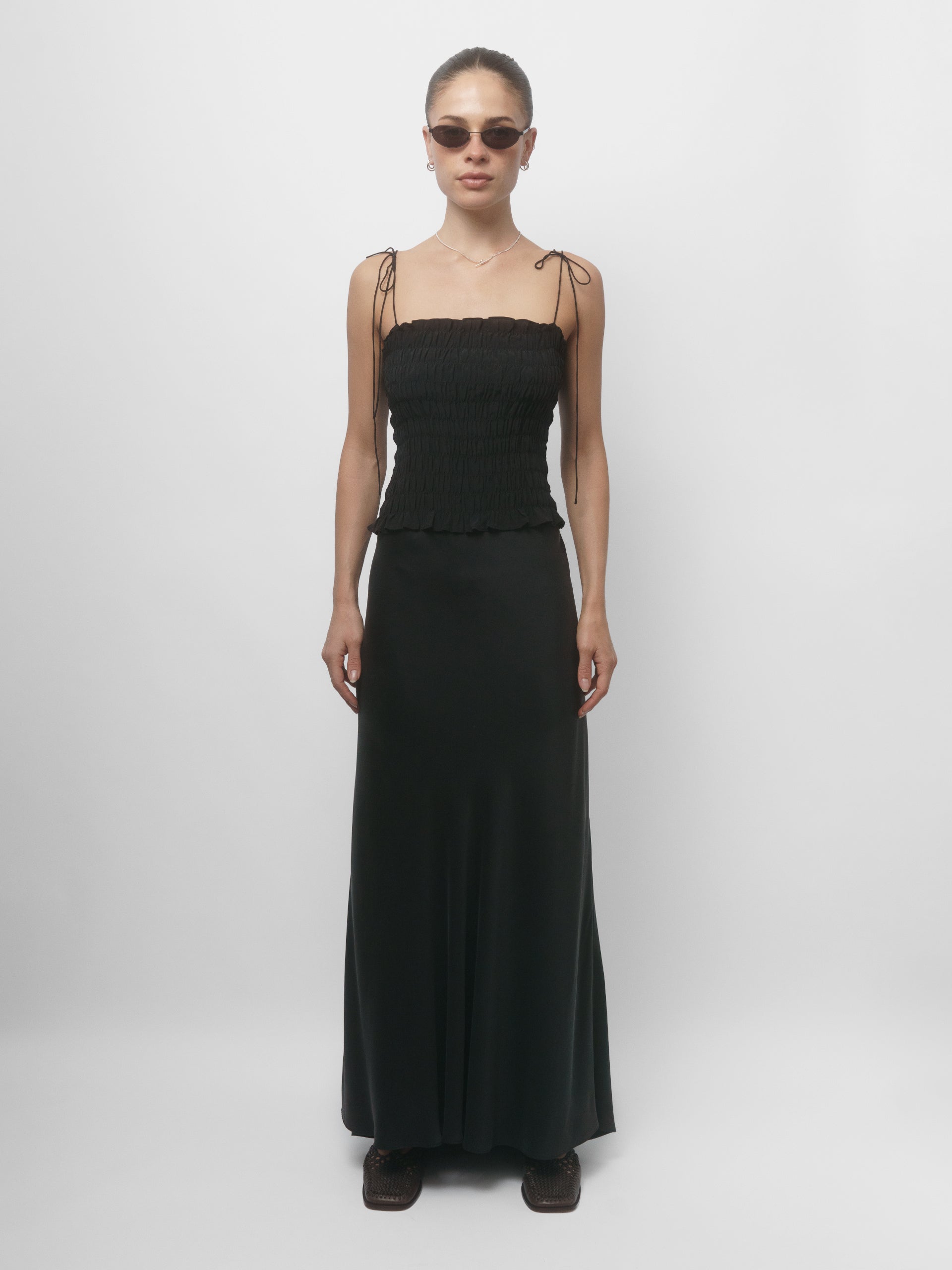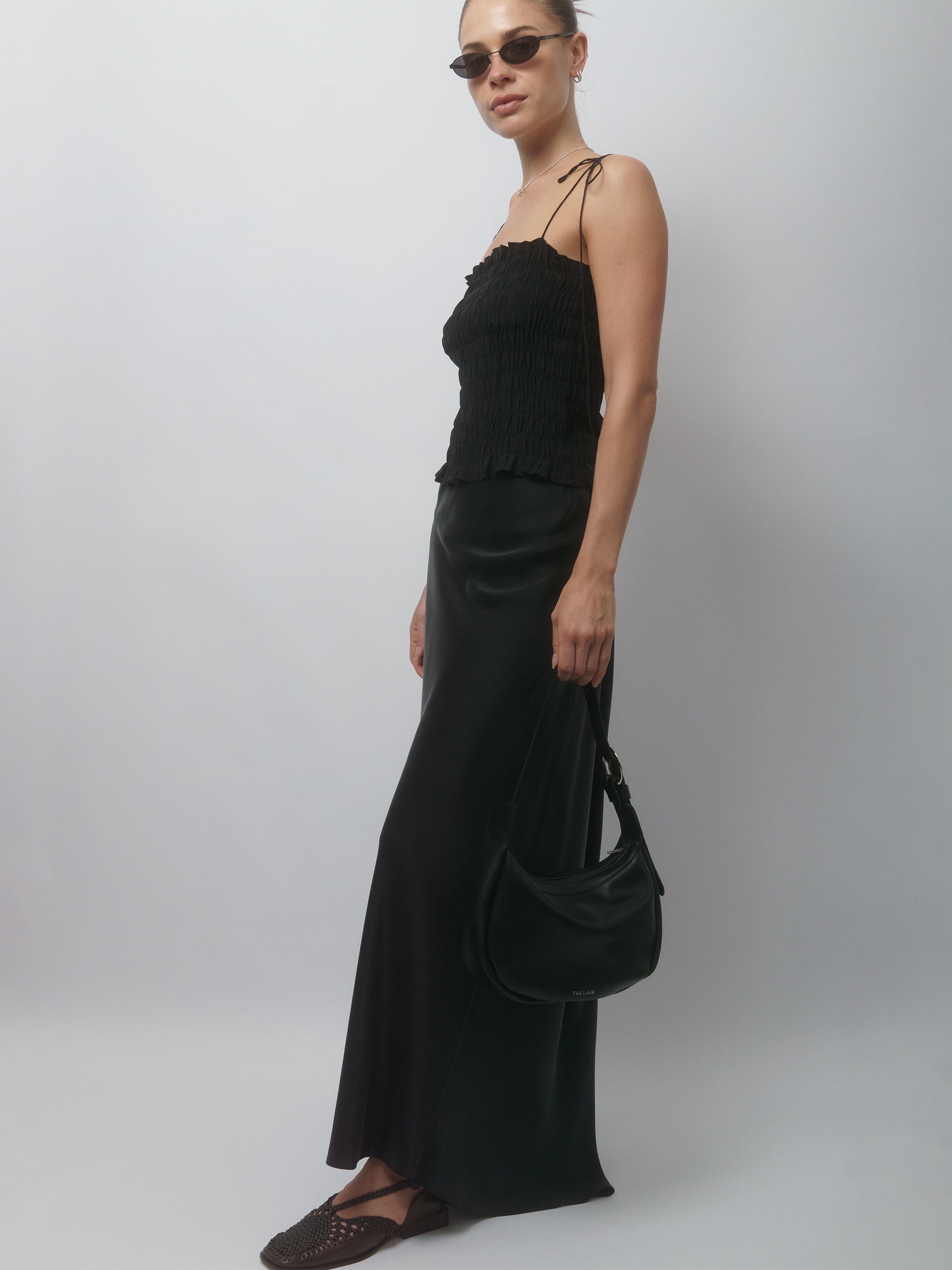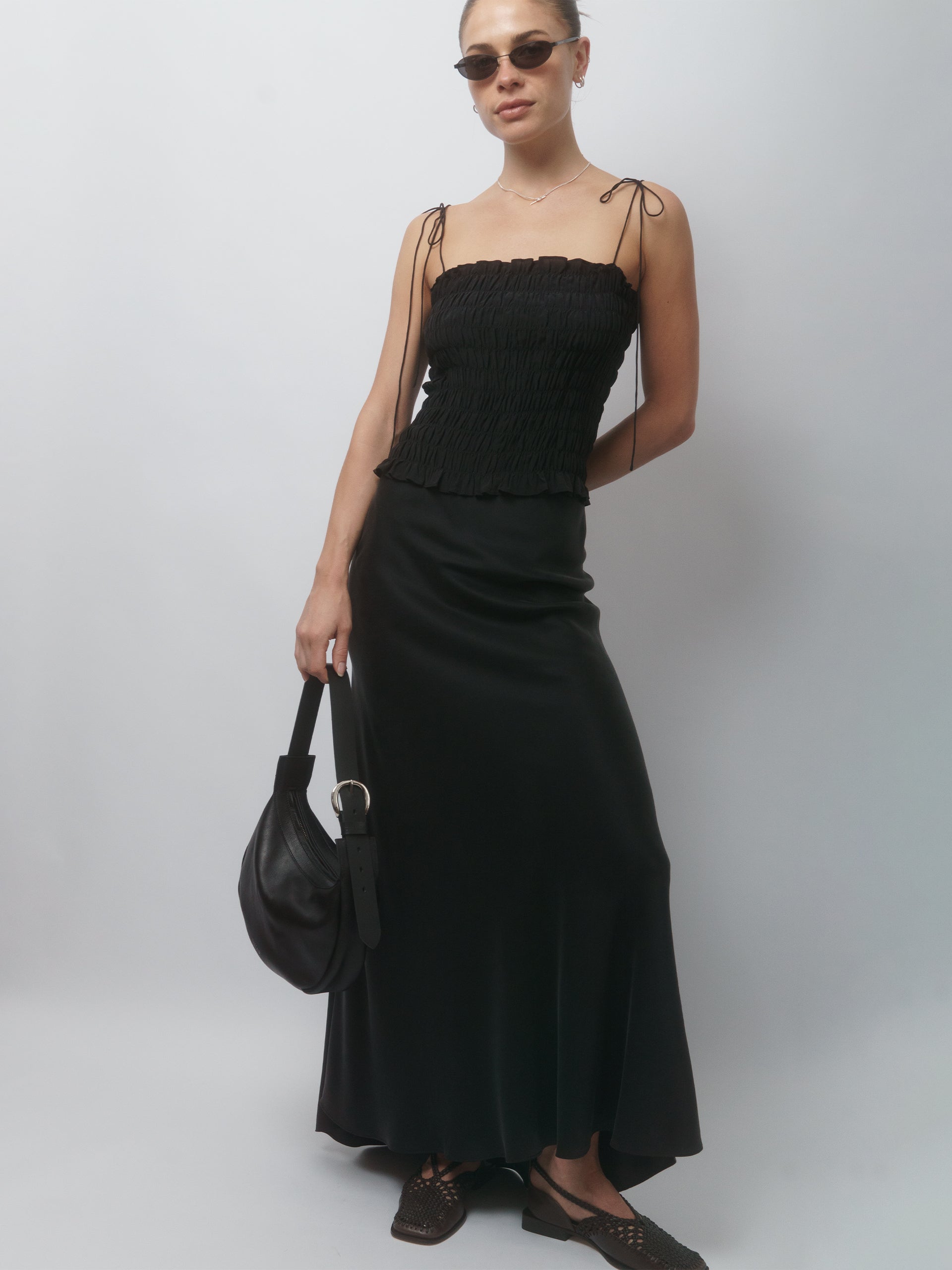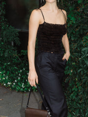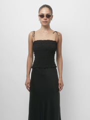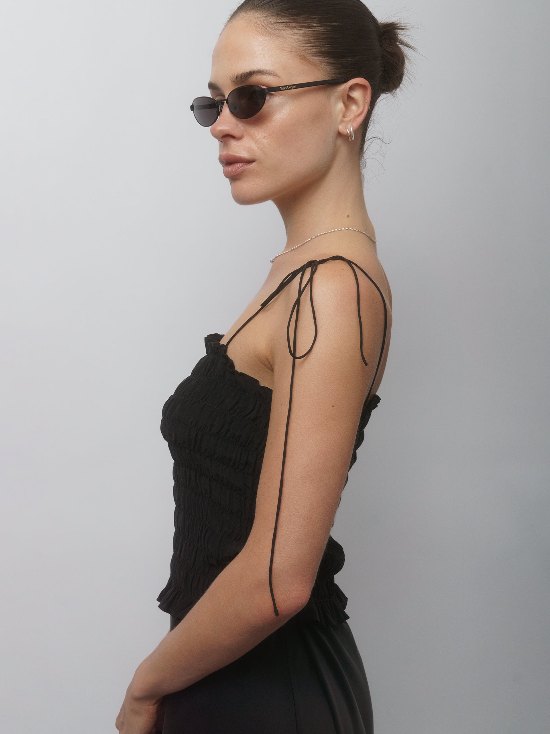 The Sasha Ruched Cami makes a statement with its bold sculptural silhouette. Slim, adjustable rouleau straps, a soft neckline, and opaque ruched fabric create a sharp contrast between structure and fluidity. Designed for those who want to stand out, and lean into romance.