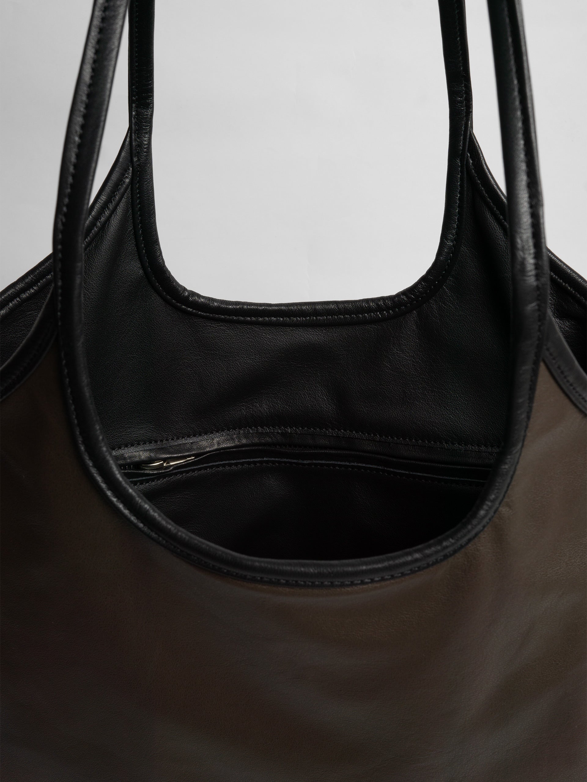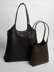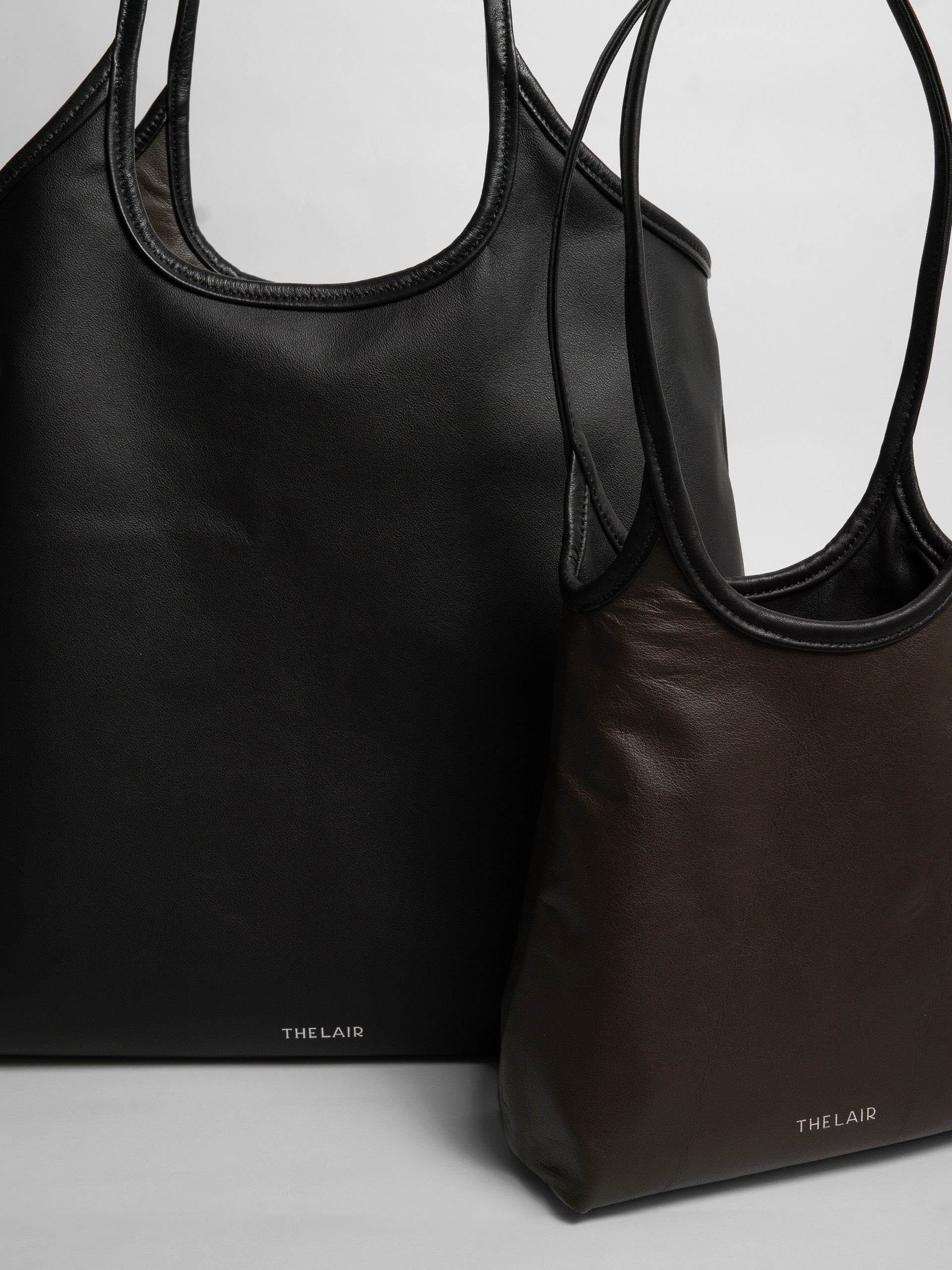 Created slowly in The Lair Studio, Newcastle, Freja is a classic tote bag with a unique edge. Crafted from supple yet hardy Italian leathers, this reversible tote allows you to display either its black or cocoa exterior, each hue as beautiful as the last. The subtle A-line shape provides ample storage space, while the black side features a convenient pocket and zip closure - functional either way you use the bag. As versatile as they come, the Freja Tote offers the practicality of two bags in one, perfect for any occasion.