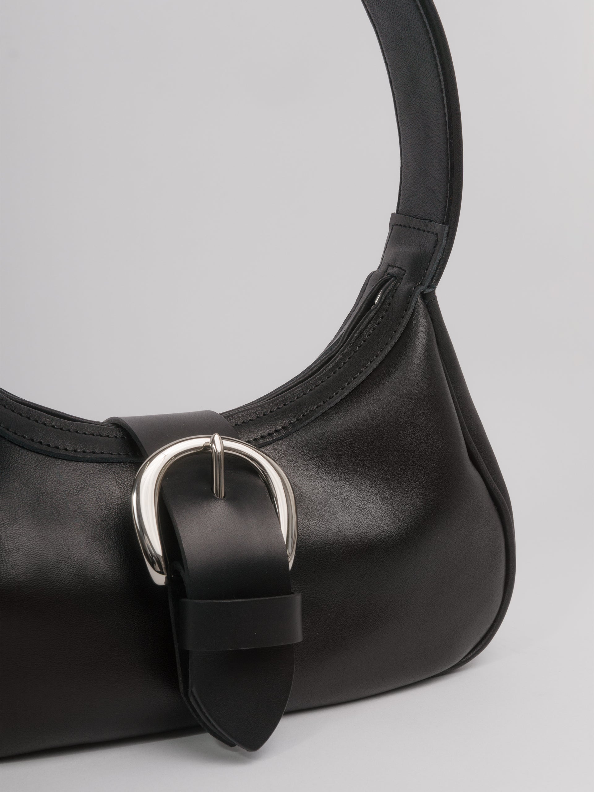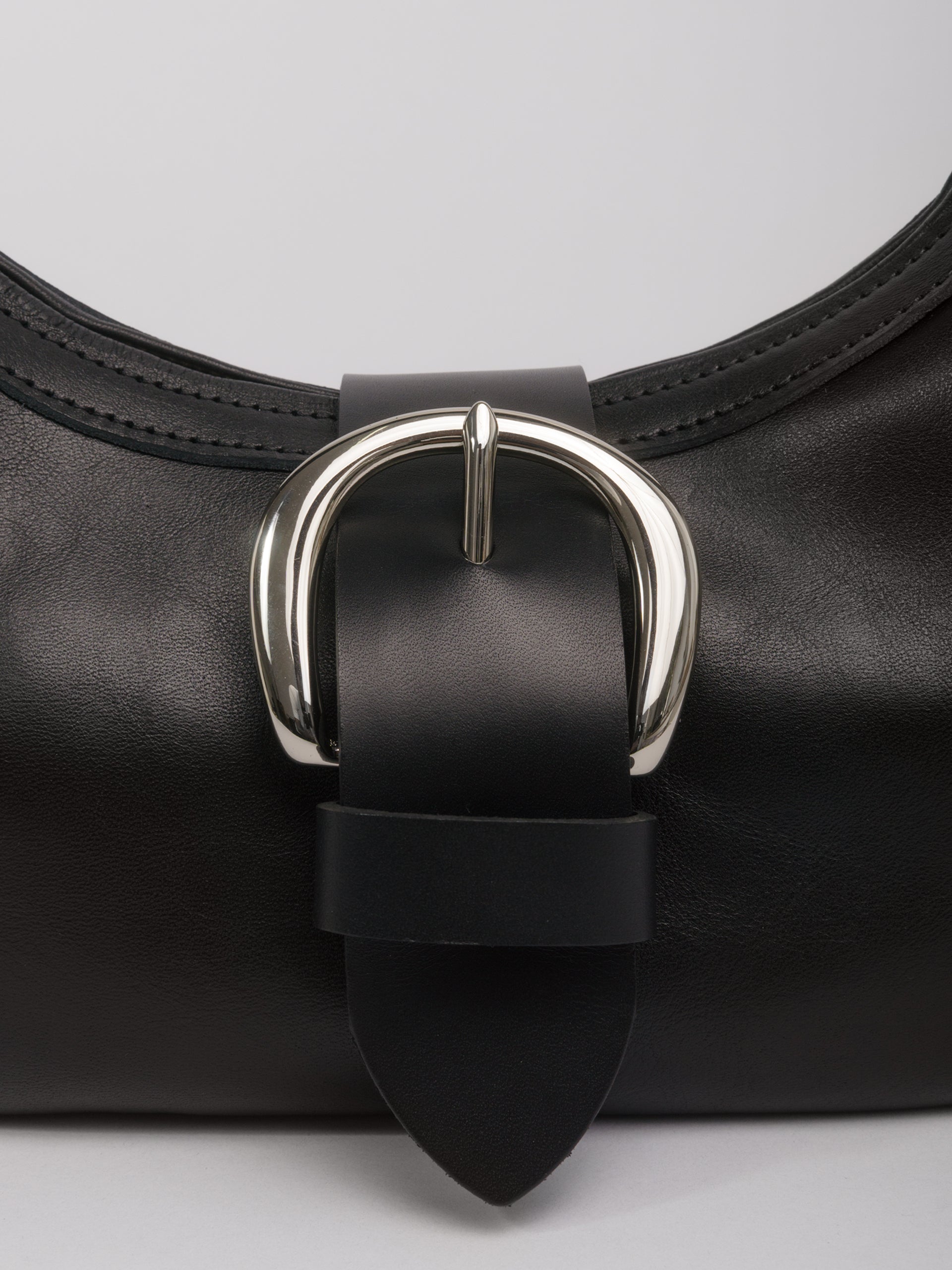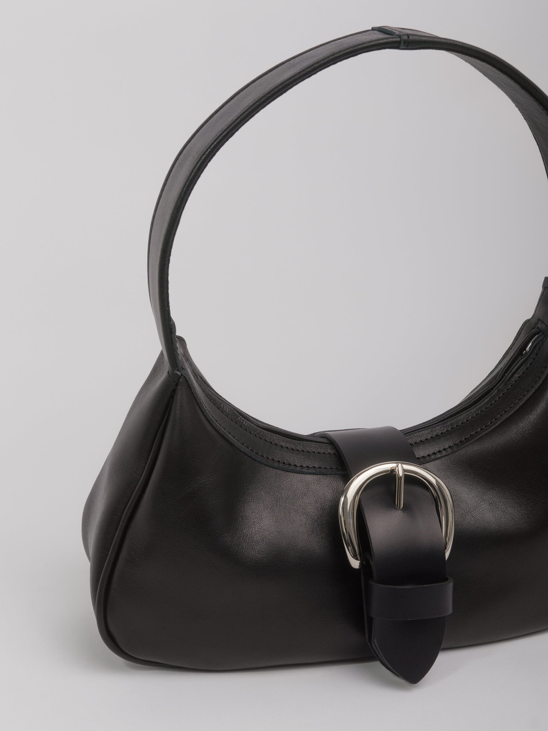 The Brigitta Handbag brings a 90s-inspired shape into the present. Crafted from Italian leather in The Lairs neighbouring design studio, its crescent silhouette blends structure with softness. A standout silver buckle adds a bold touch to the front, while the fixed strap is designed to tuck neatly under your arm. Sized for your essentials, Brigitta is built for everyday use.
