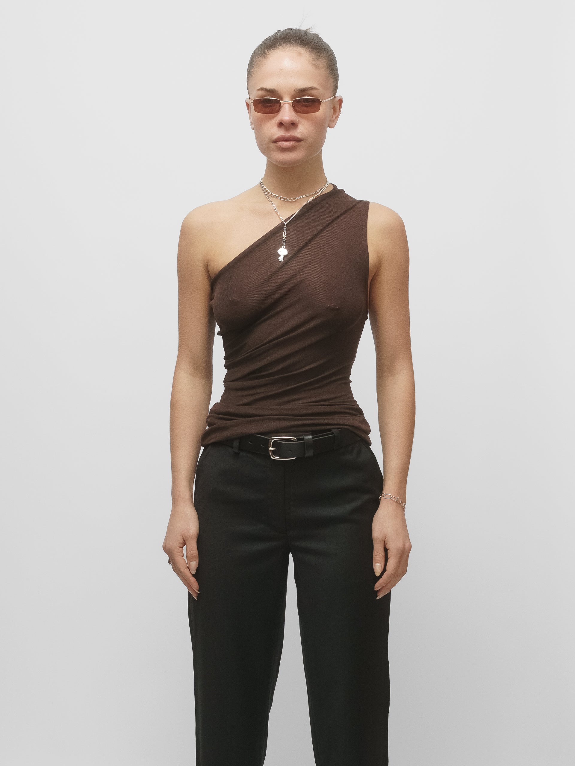 The Lair Apparel Anja One Shoulder Top Cocoa