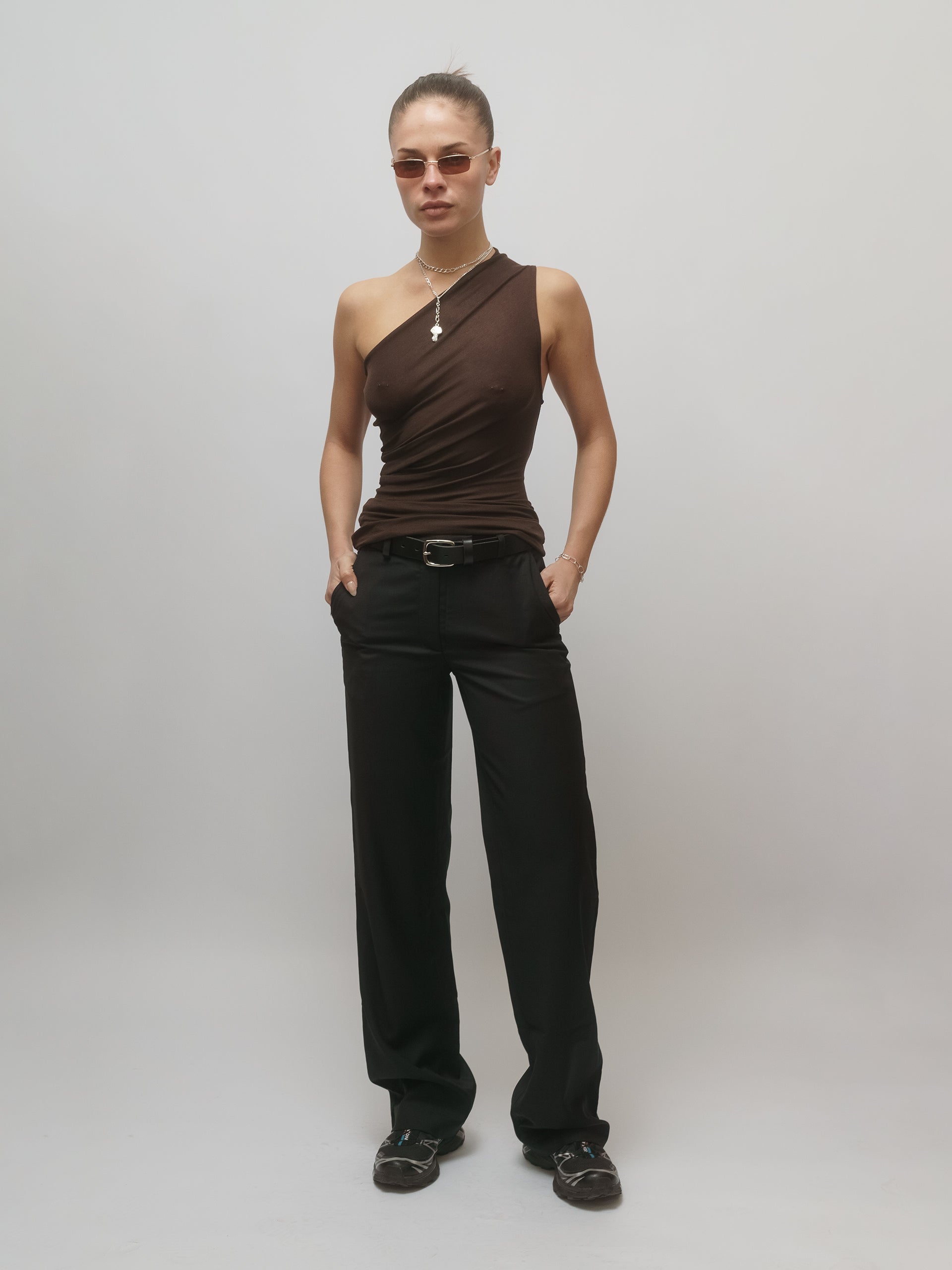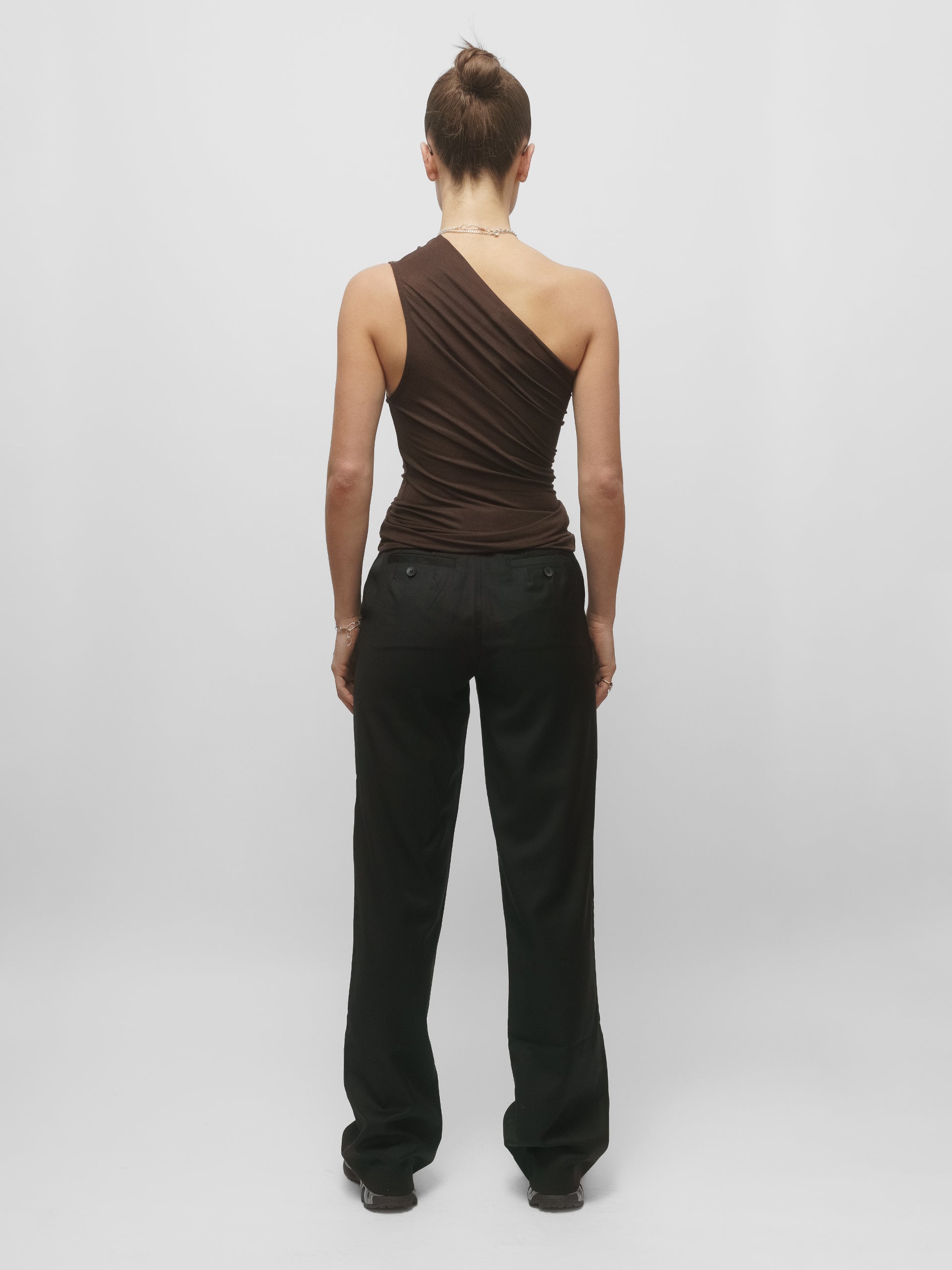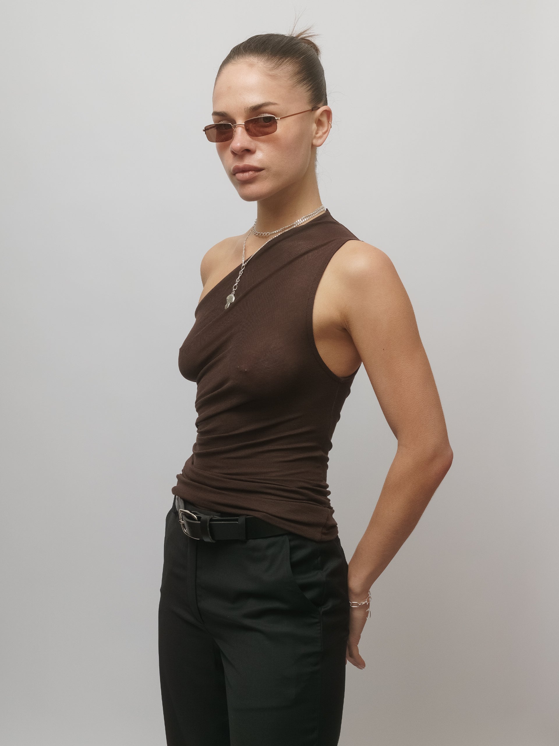 The Anja One Shoulder Top is clean, sculptural, and quietly subversive. Cut from an ultra-soft stretch jersey, it forms to the body with ease - sleek, breathable, and just slightly sheer. An asymmetric neckline introduces a sharp, unexpected edge to an otherwise minimal silhouette.