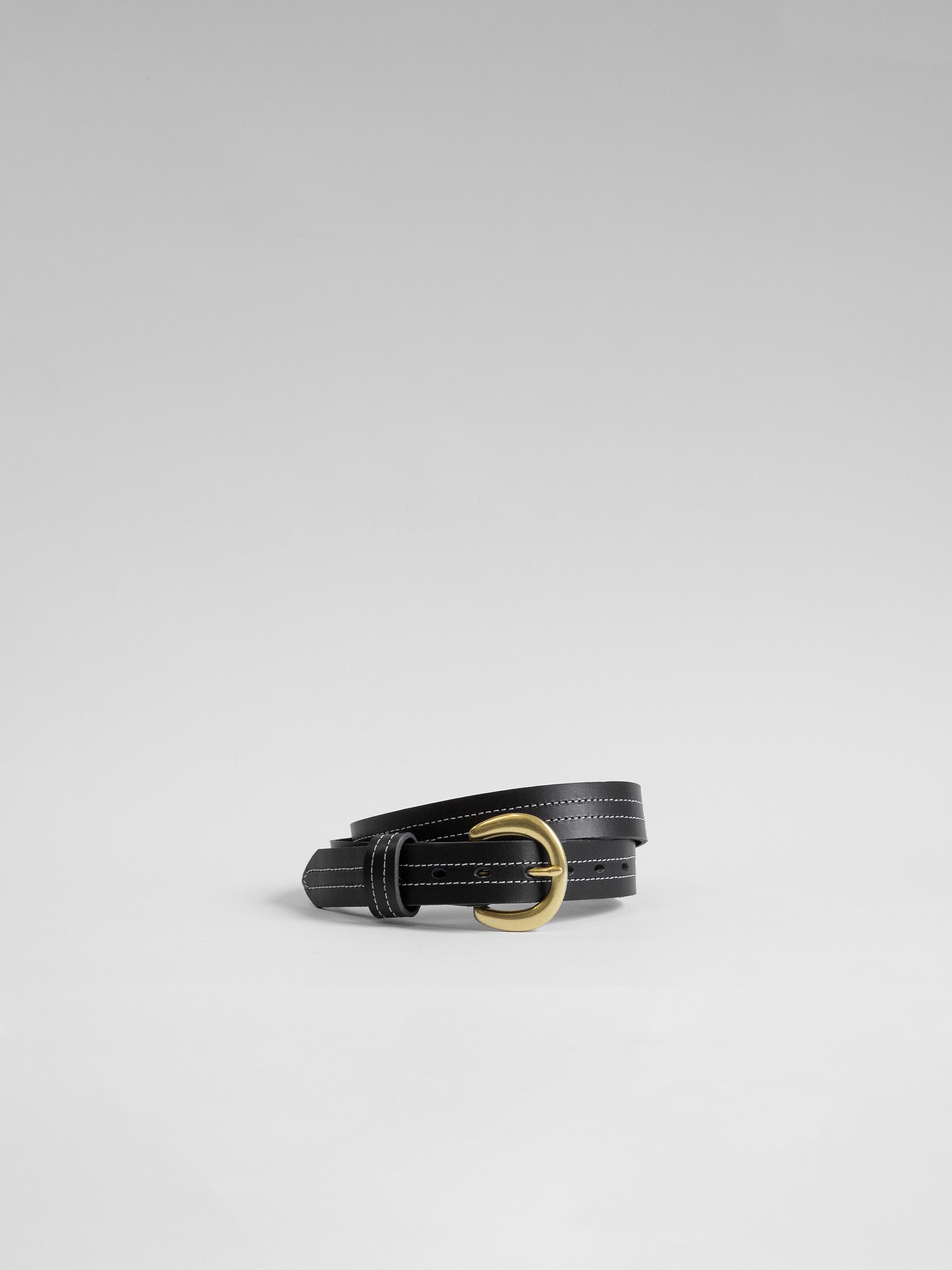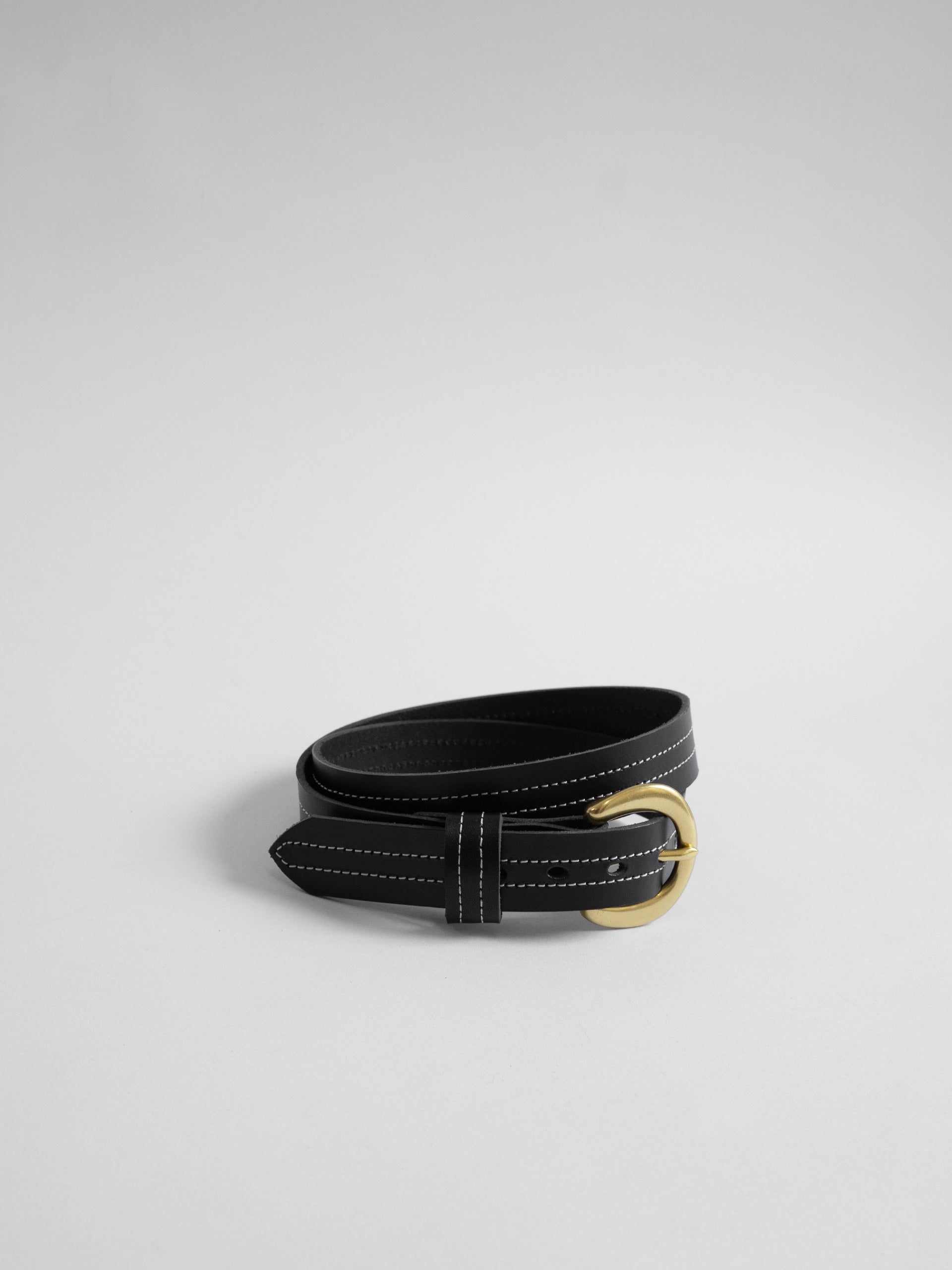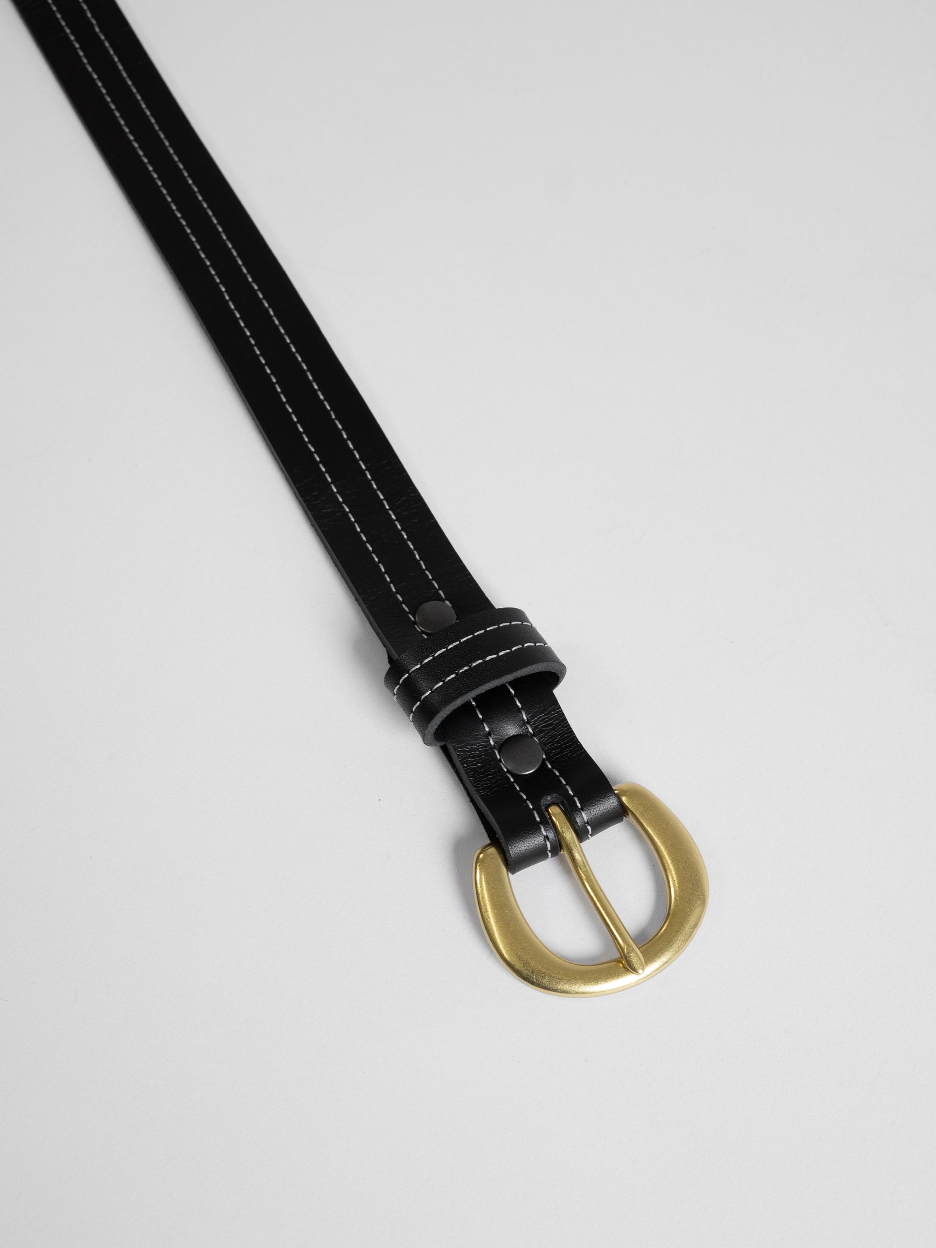 The Lair Camille White Stitch Belt Slim Brass
