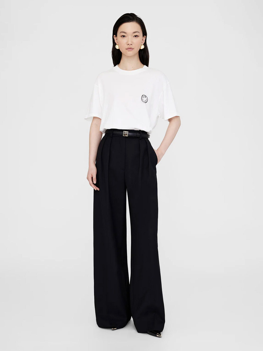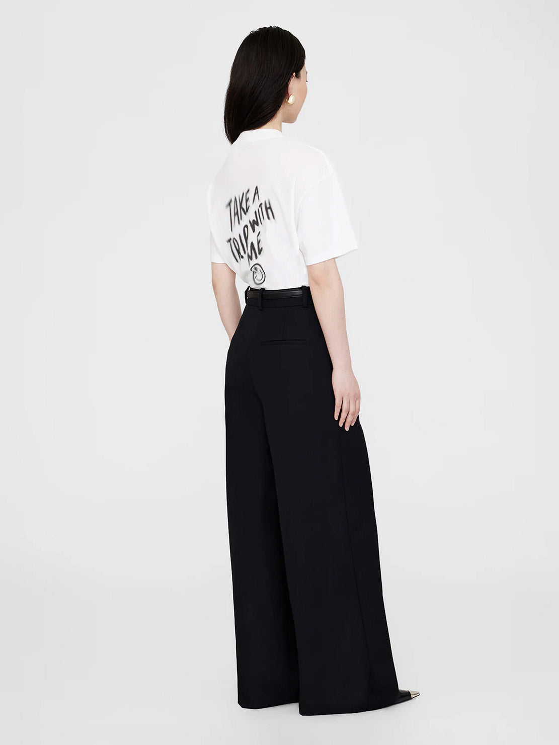 Anine Bing relaxed fit wool-blended tailored trousers. Featuring a high-rise double pleated waistband, oversized centre-pressed wide legs, and fronted side slant pockets.