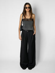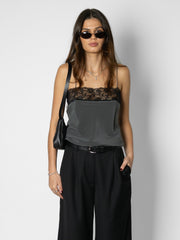 A refined interpretation of a 90's inspired cut, Sula is a bias-cut cami with a bold lace trim and scalloped edge. A sultry hip grazing hem allows this piece to be easily layered over a silk skirt, and seamlessly tucked into denim or trousers.